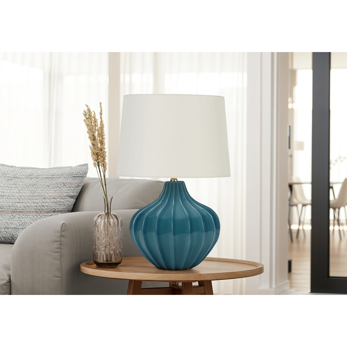 Basset 3-Way Ceramic Table Lamp with Drum Shade - 23 in. H