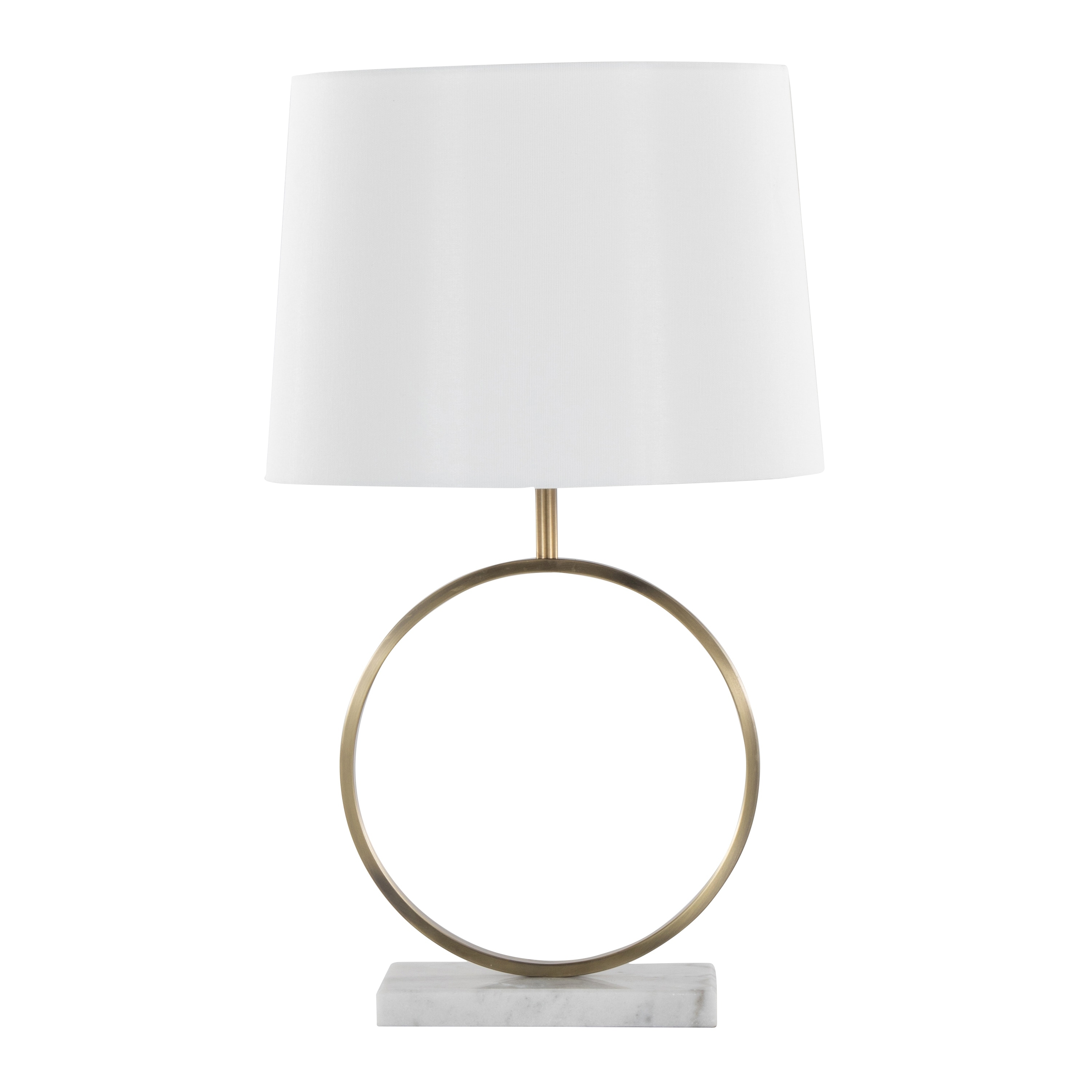 28" Metal Table Lamp in Antique Brass and White Linen