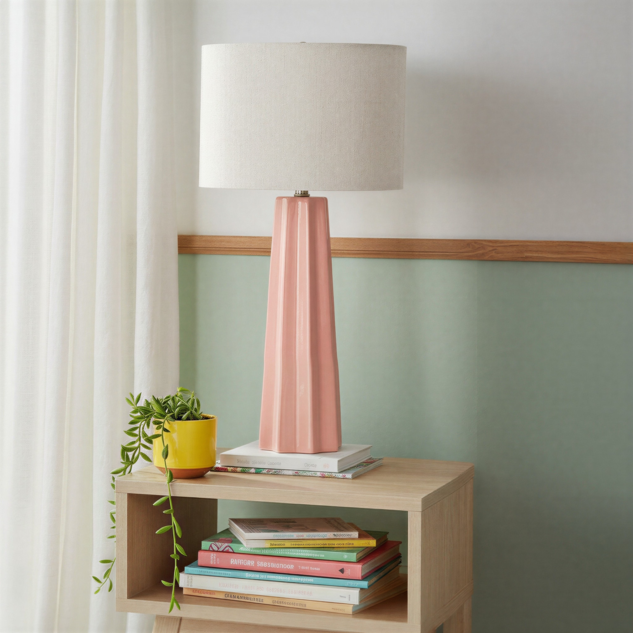 Enameled Aluminum Fluted Table Lamp with Linen Shade - 12.0"L x 12.0"W x 24.0"H