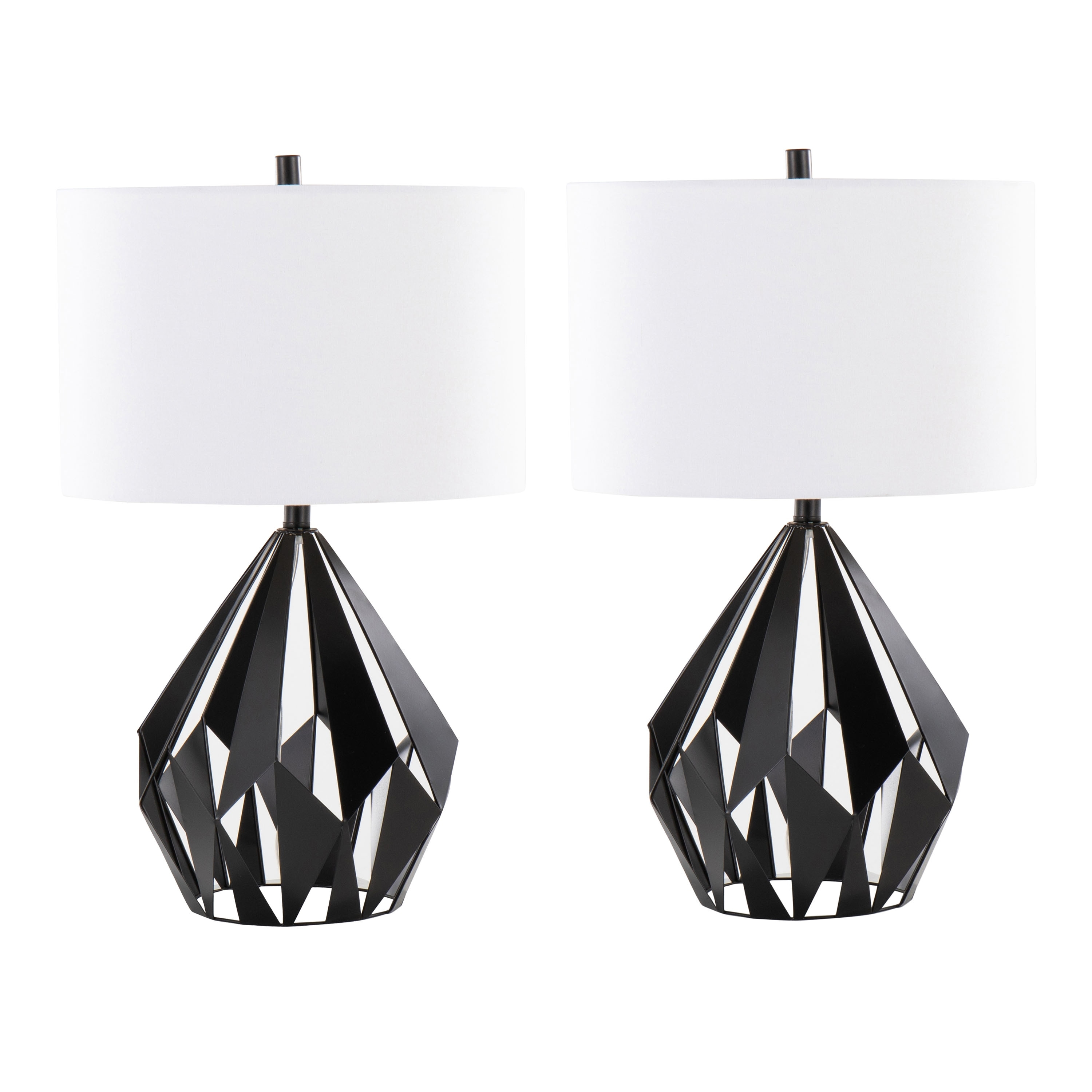 28" Contemporary Metal Table Lamp in Matte Black Metal with White Linen Shade from Grandview Gallery - Set of 2