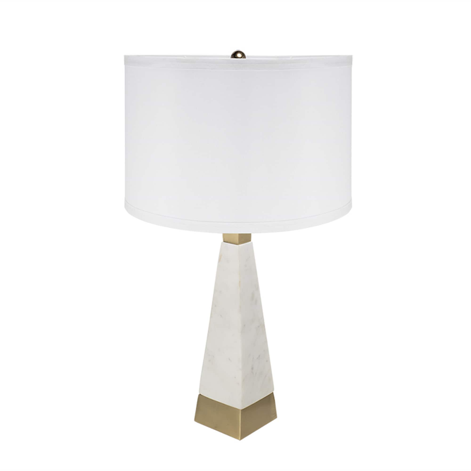 D15x26" White and Gold Thin Pyramid Table Lamp with Drum Shade