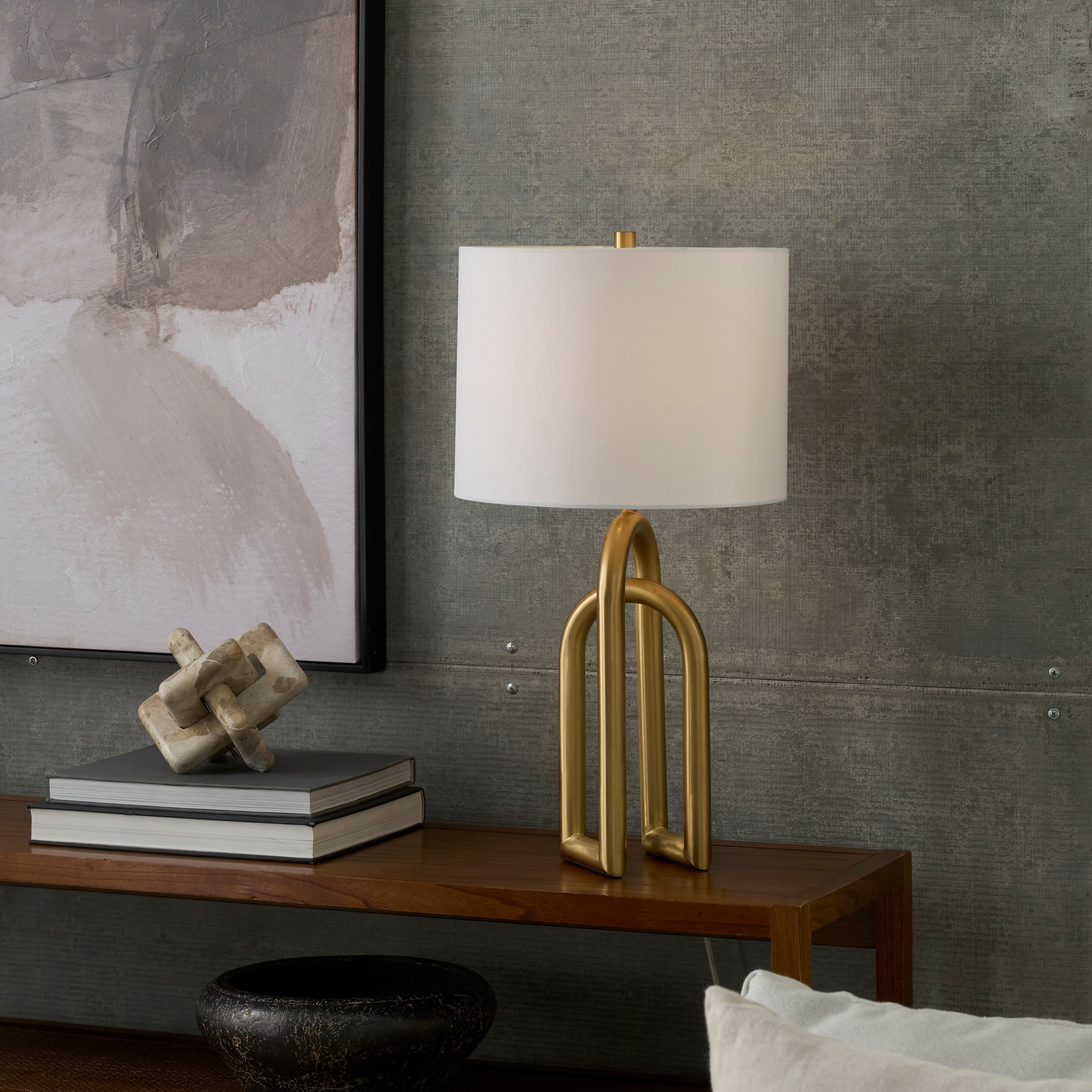 Nourison 23" Metal Interlock Modern Table Lamp