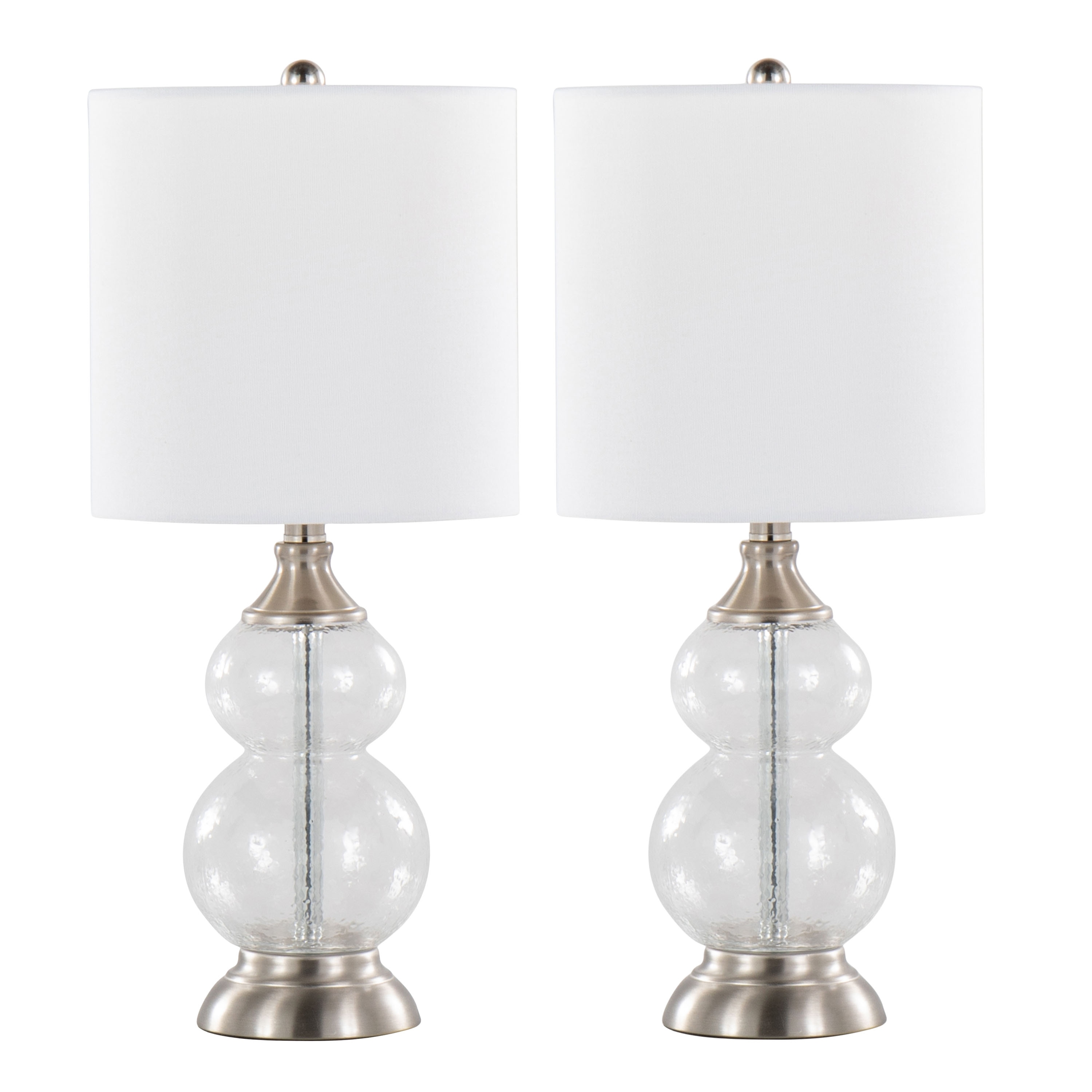20"Contemporary Glass Accent Lamp in Clear Wrinkle Glass,Brushed Nickel and White Linen Shade from Grandview Gallery-Set of 2