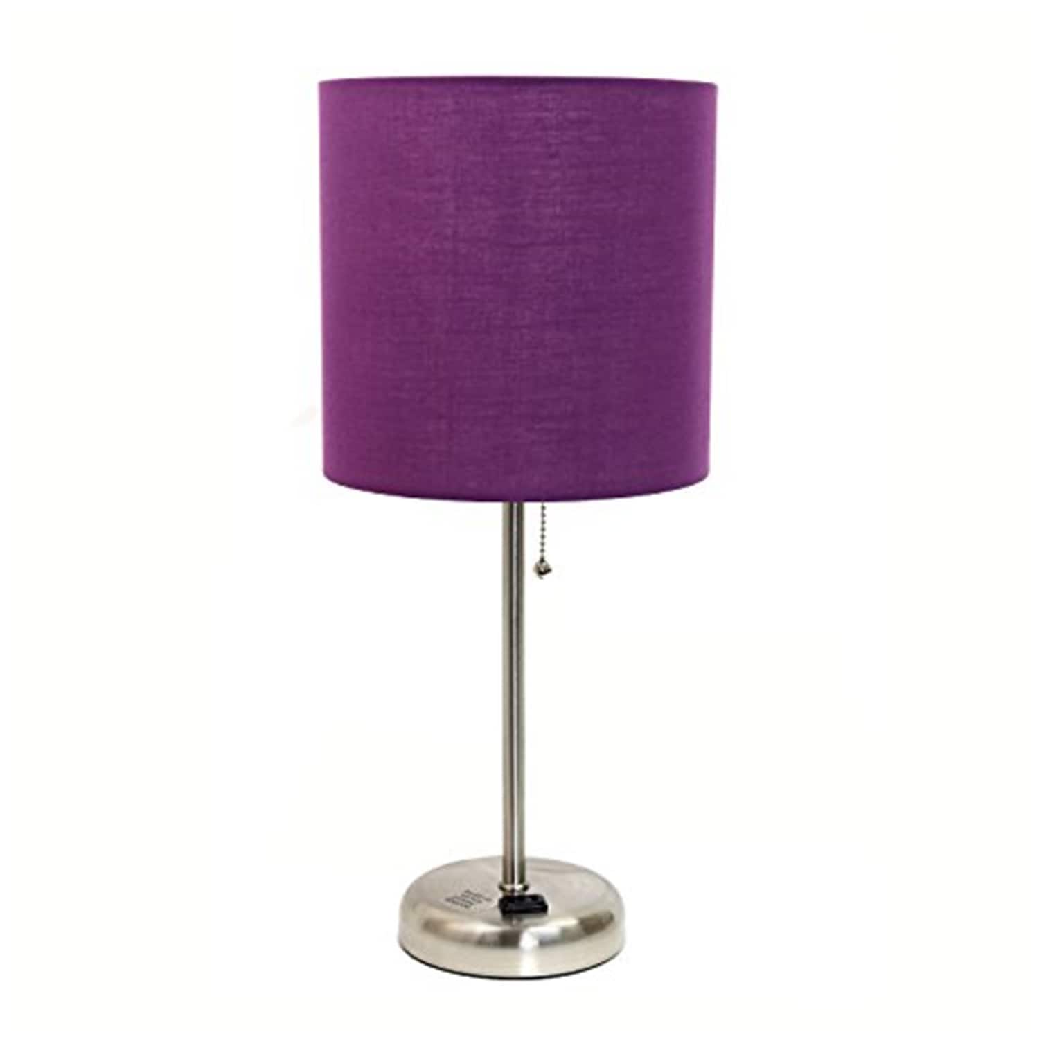 19.5 in. Brushed Steel Finish Table Lamp with Purple Shade, Durable Stick Lamp for End/Side Tables