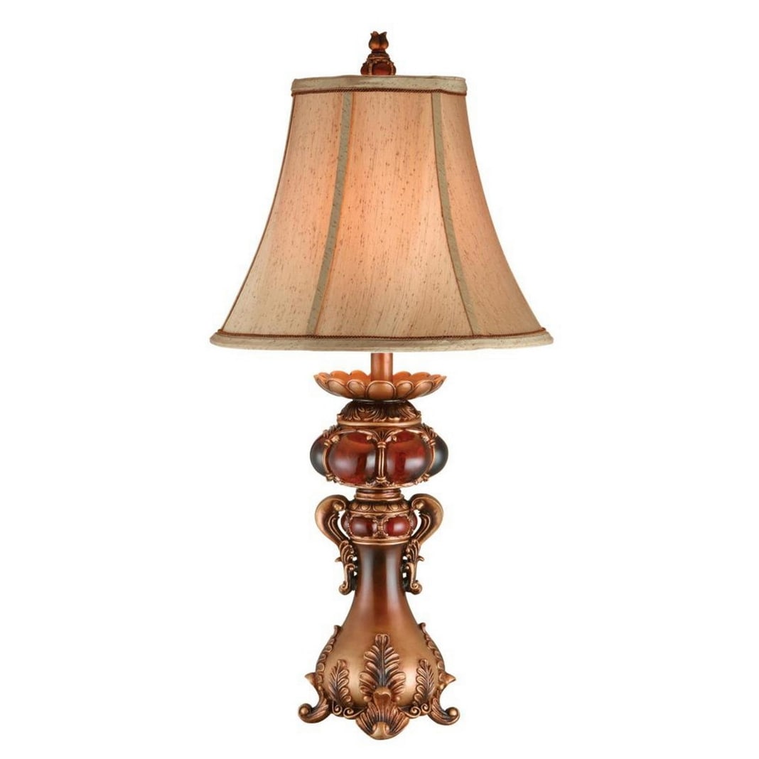 31" Tall Polyresin Table Lamp with Red and Brown finish, Linen Shade