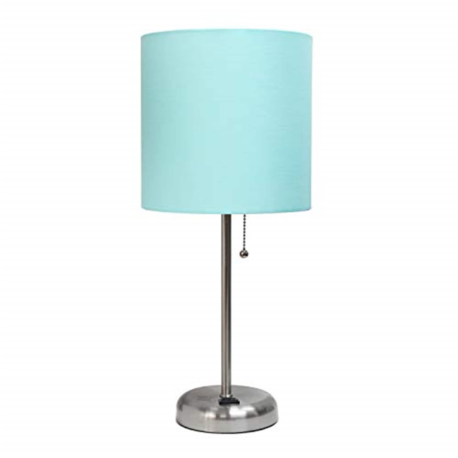 15.25 in. Aqua Finish Table Lamp with White Shade, Sturdy Table Lamp for Living Rooms and Bedrooms