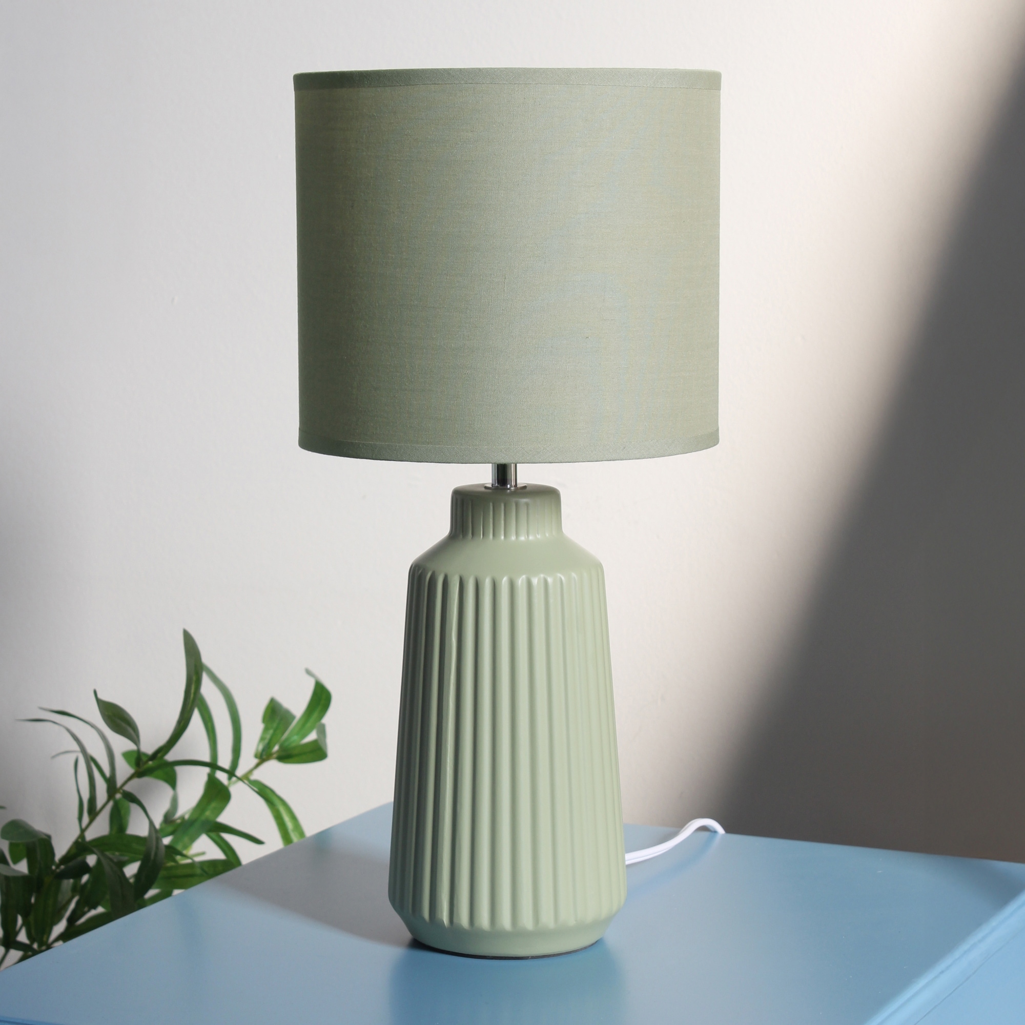 Vertical Grooved Ceramic Table Lamp with Drum Shade - 16" - Olive Green
