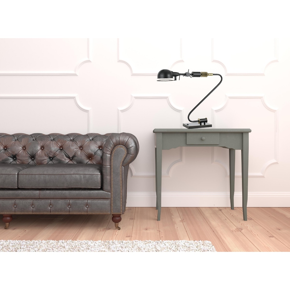 Matte Black Metal Desk Lamp with Antique Brass LED, USB and Wireless Charging - 15.5” x 4.75” x 19” (D x W x H)