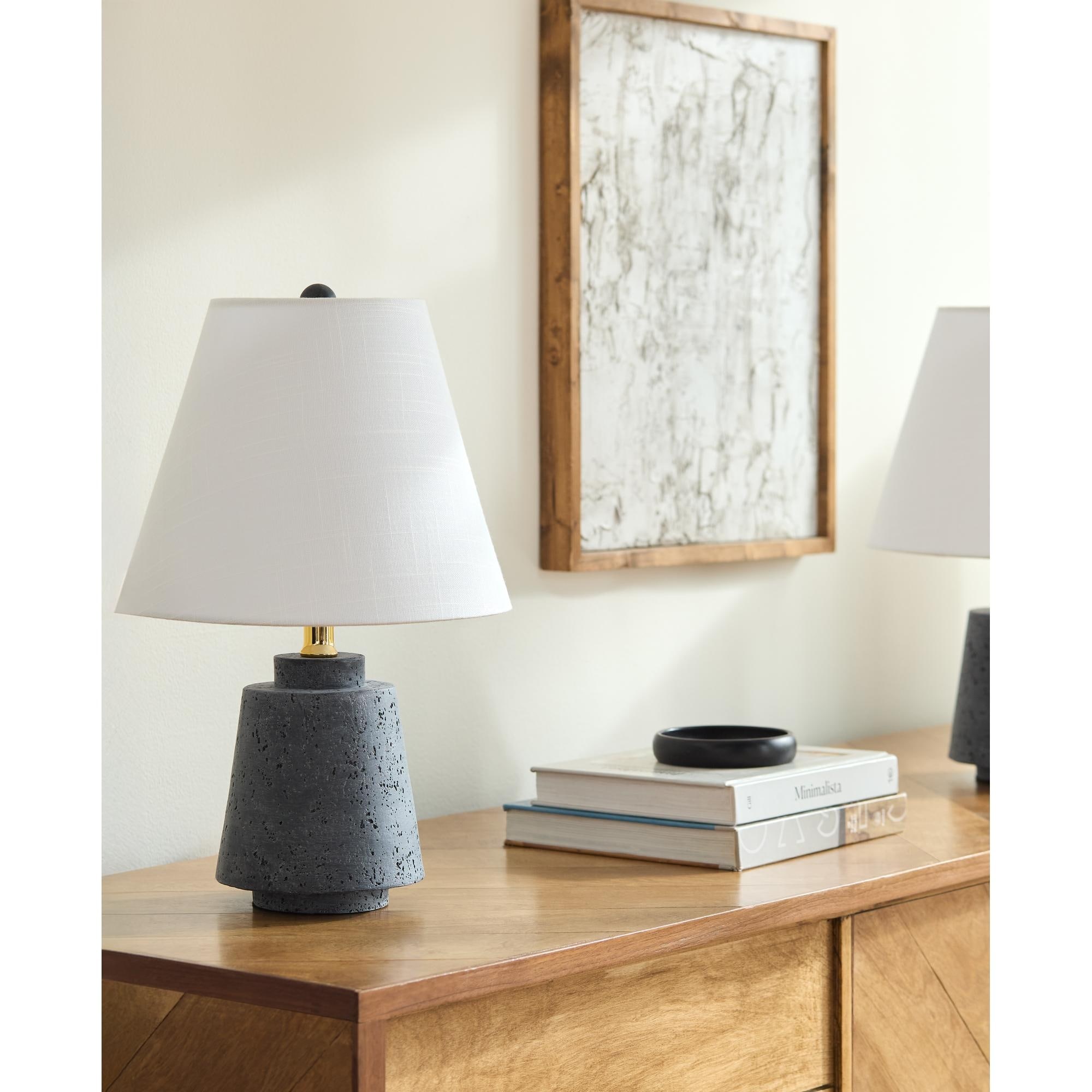 26 inch Speckled Cone Table Lamp, Black Stone Base, Beige Drum Shade