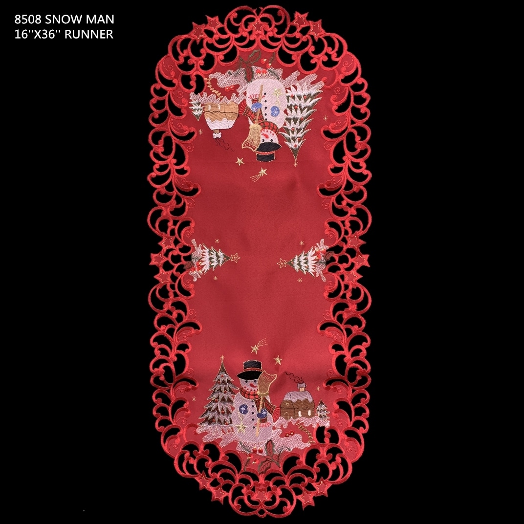 Snow Man Embroidered Cutwork Rectangular Table Runner, 13 by 27 inch