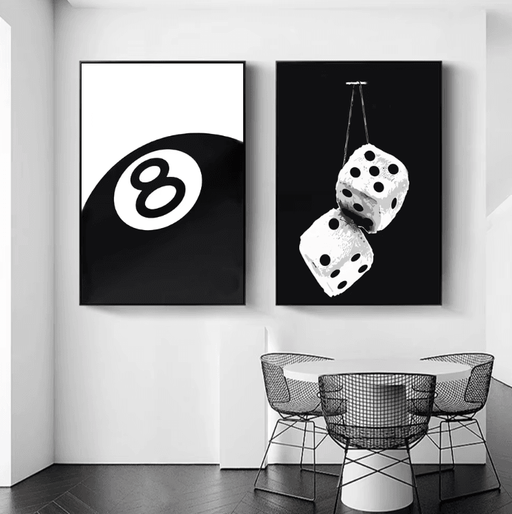 Black And White 8 Ball Billiards Canvas Wall Art Modern Pool Room Decor Poster 21.65x31.50in Unframed lucky Dice Drop