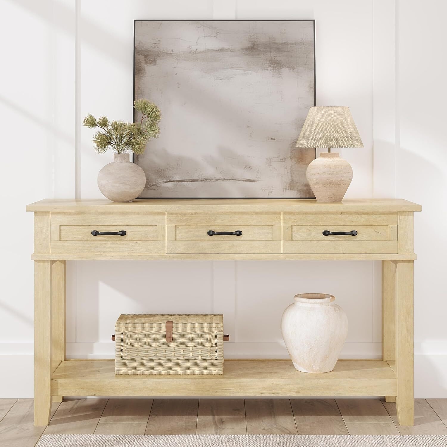 2 Tier Farmhouse Entryway Table, Console Table with 3 Storage Drawers