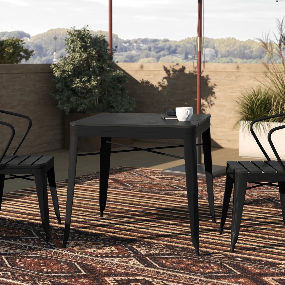 Indoor/Outdoor Steel Patio Table with Faux Wood Slatted Top