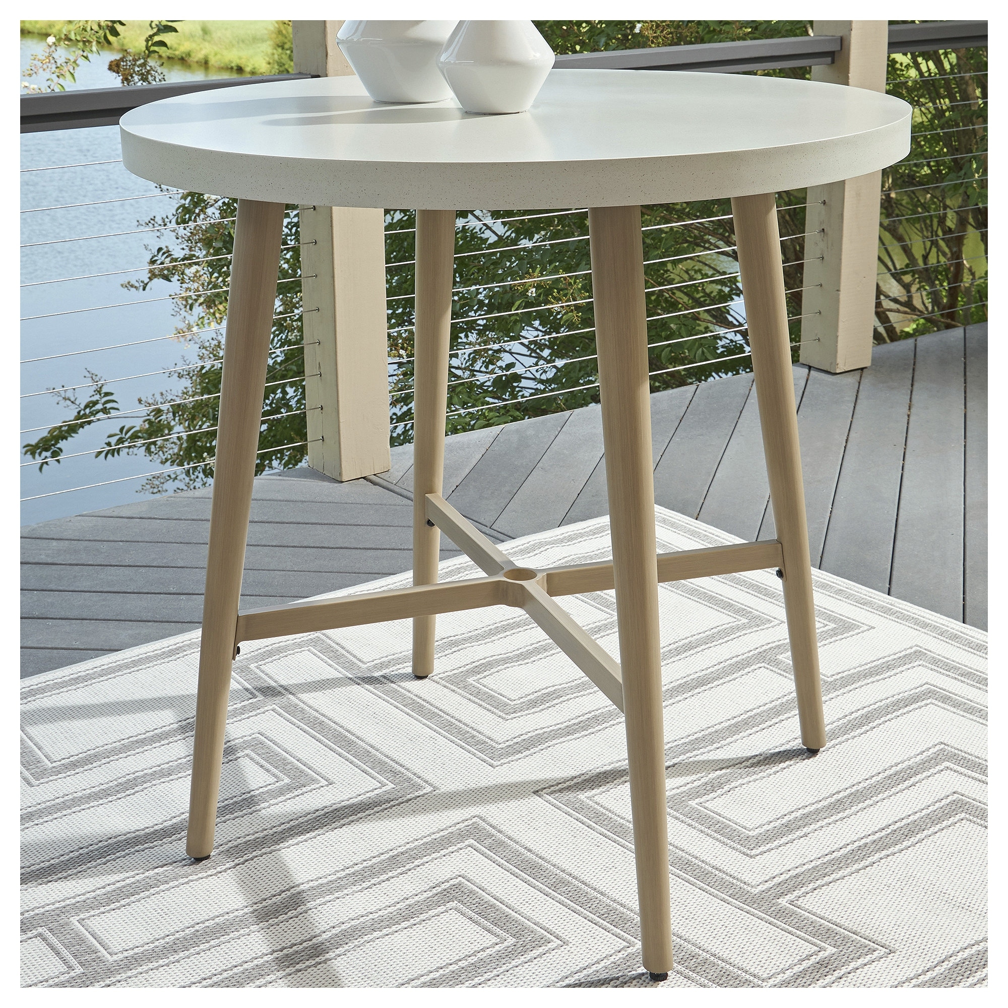 Signature Design by Ashley Seton Creek Beige/White Outdoor Bar Table - 40" W x 40" D x 42.25" H