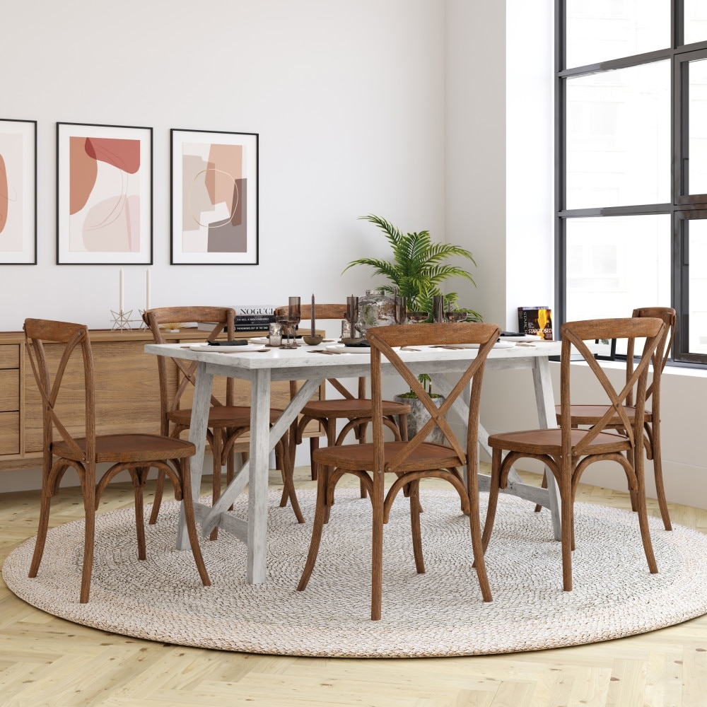 71" Farmhouse Dining Table Rectangular with X-Trestle Metal Legs Rustic Black