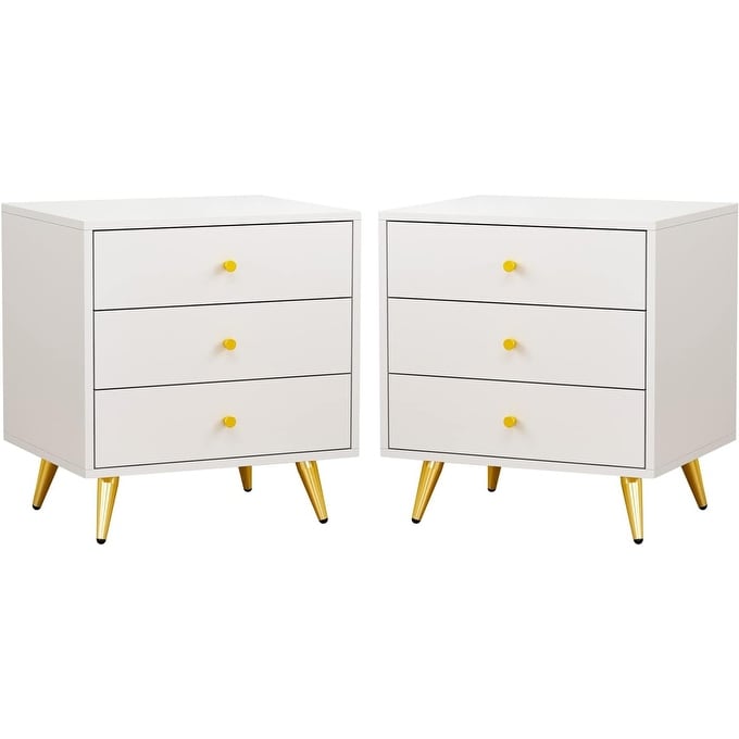 Modern 2-Piece Nightstand Set with 3 Drawers, White Metal Legs, Versatile Bedside Table for Bedroom or Living Room