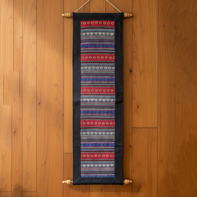 'Folk Art-Themed Patterned Cotton Wall Hanging from Thailand'
