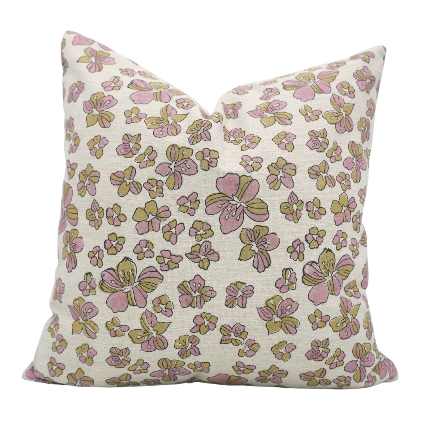 Fabdivine Floral Throw Fall Summer Décor Pink Pillow Cover Handmade Linen, for Farmhouse Guest Room or Couch, Custard Apple