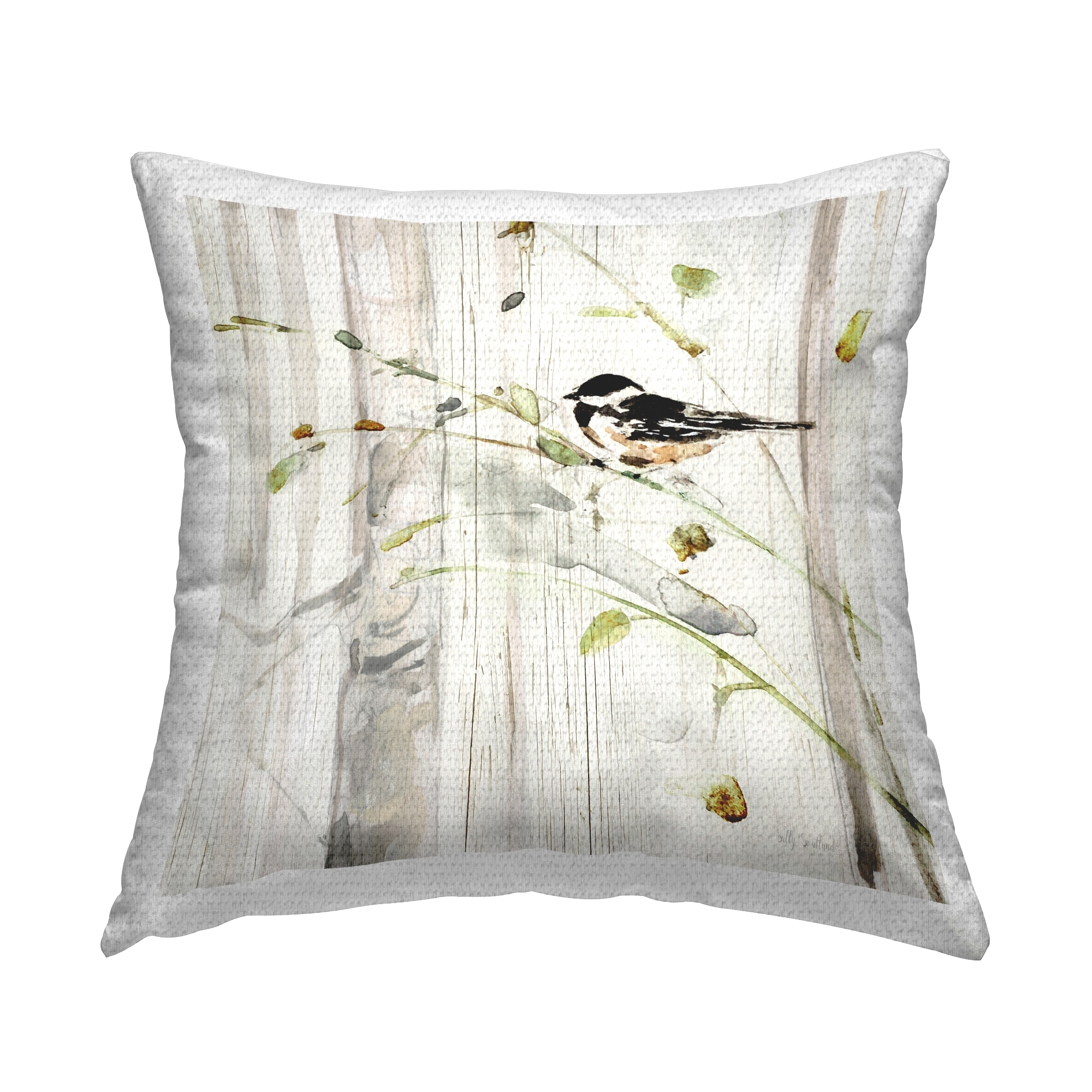 Stupell Rustic Bird Perched Grain Pattern Printed Outdoor Throw Pillow Design by Sally Swatland
