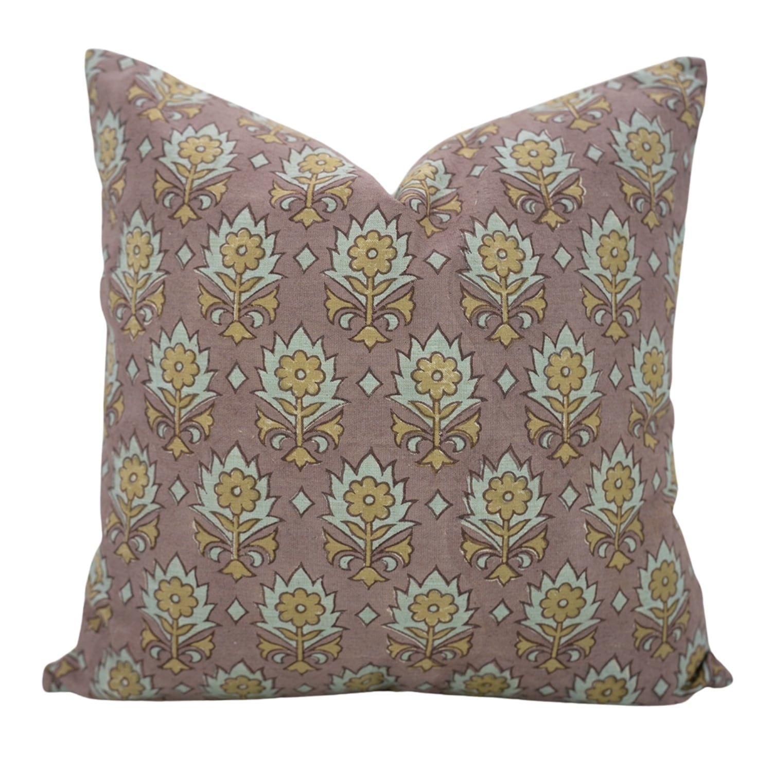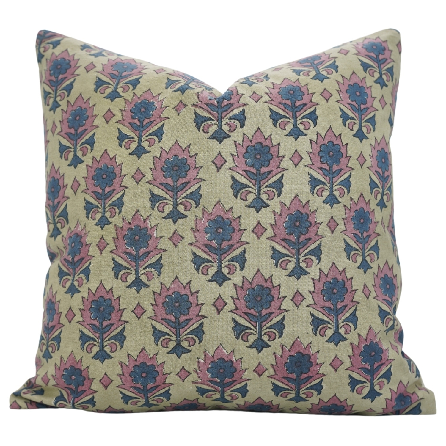 Fabdivine Floral Throw Fall Summer Décor Pink Pillow Cover Handmade Linen, for Farmhouse Guest Room or Couch, Custard Apple