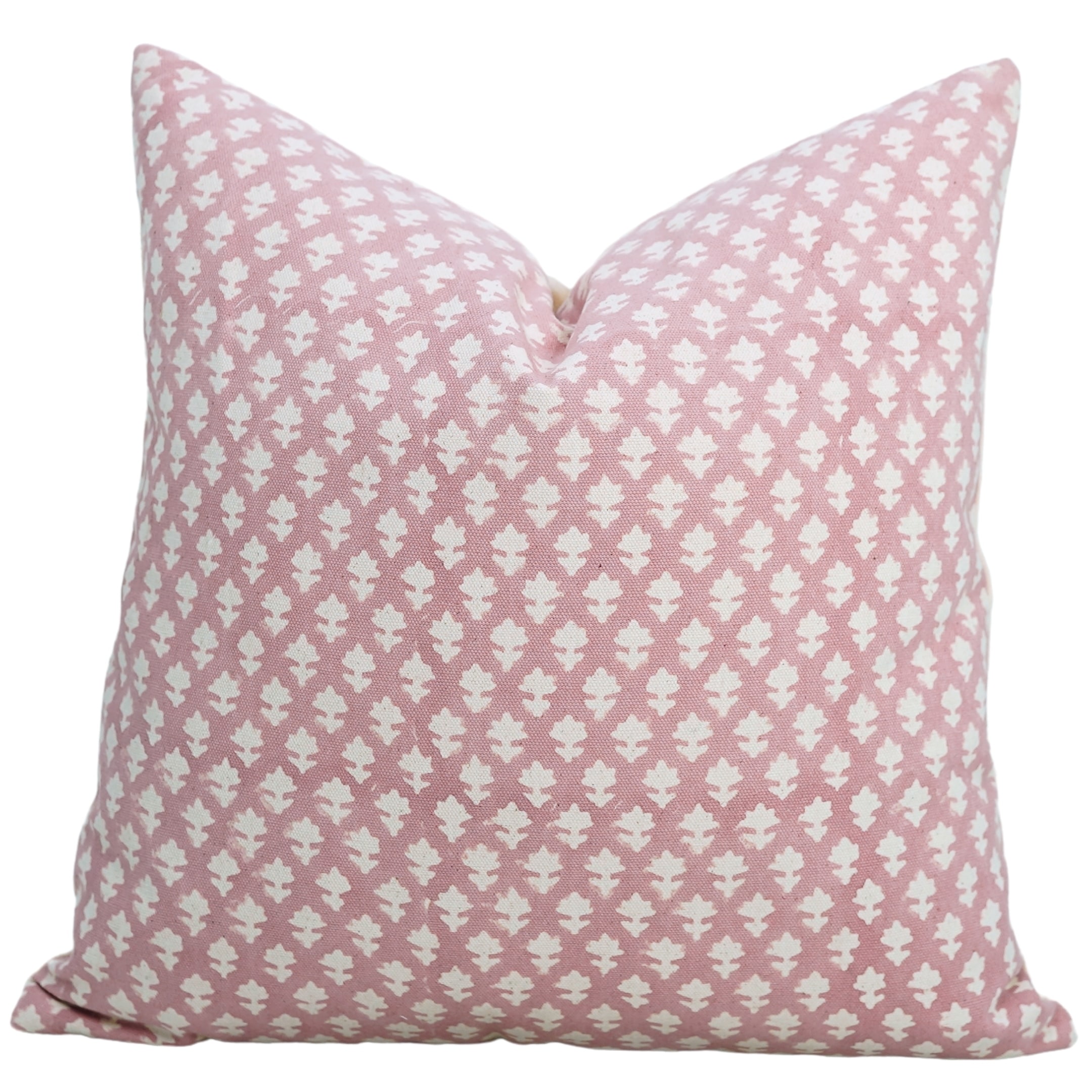 Sanganeri Block Print Indoor/Outdoor Reversible Throw Pillow Pink and Grey