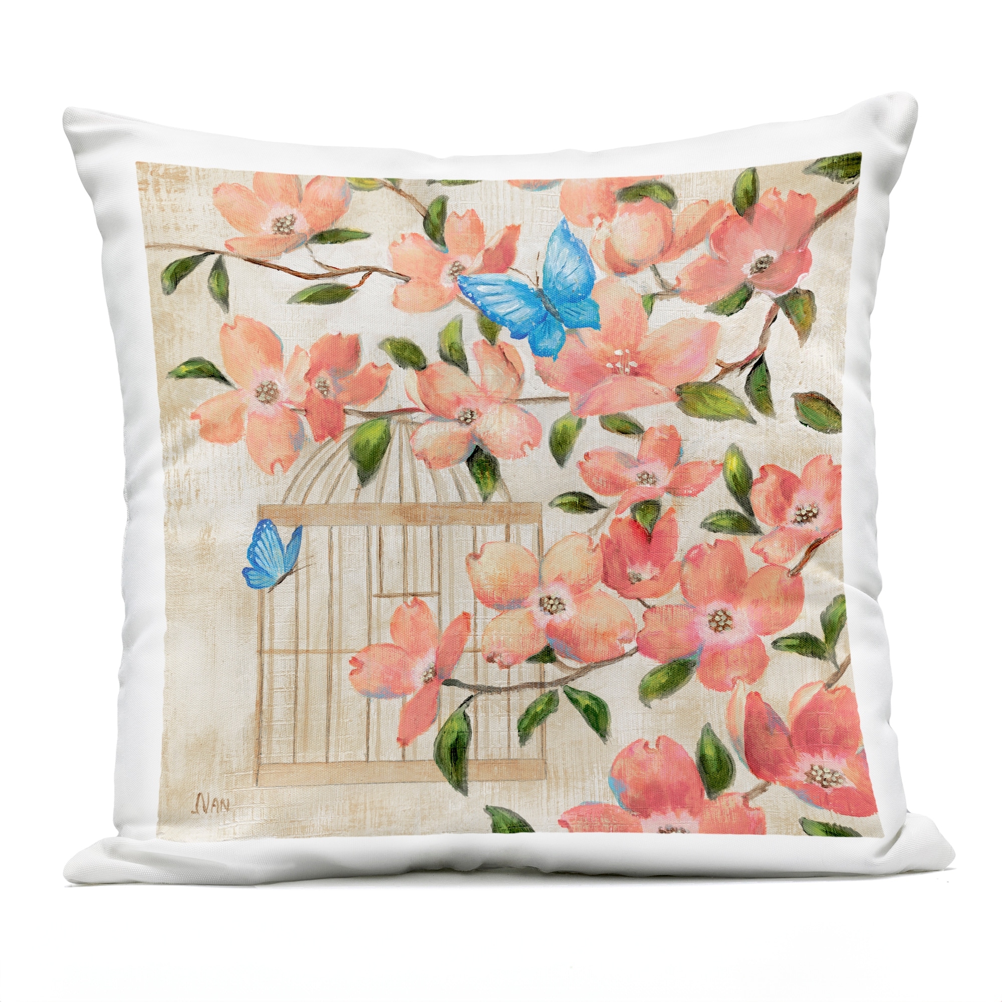 Stupell Evening Song Birdcage Over Beige Printed Outdoor Throw Pillow Design by Nan