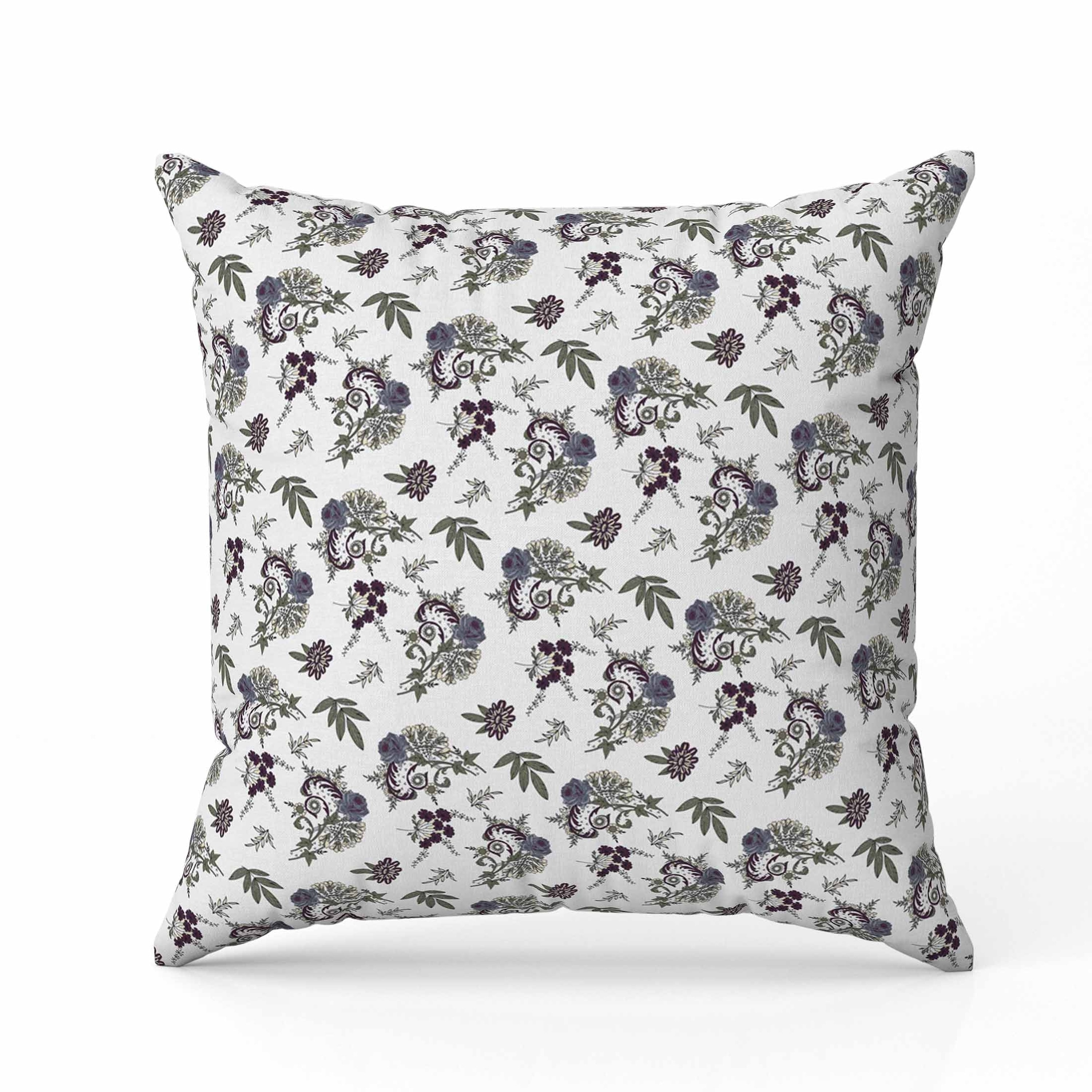 Mixed Flower Delight Indoor/Outdoor Reversible Throw Pillow White and Blue