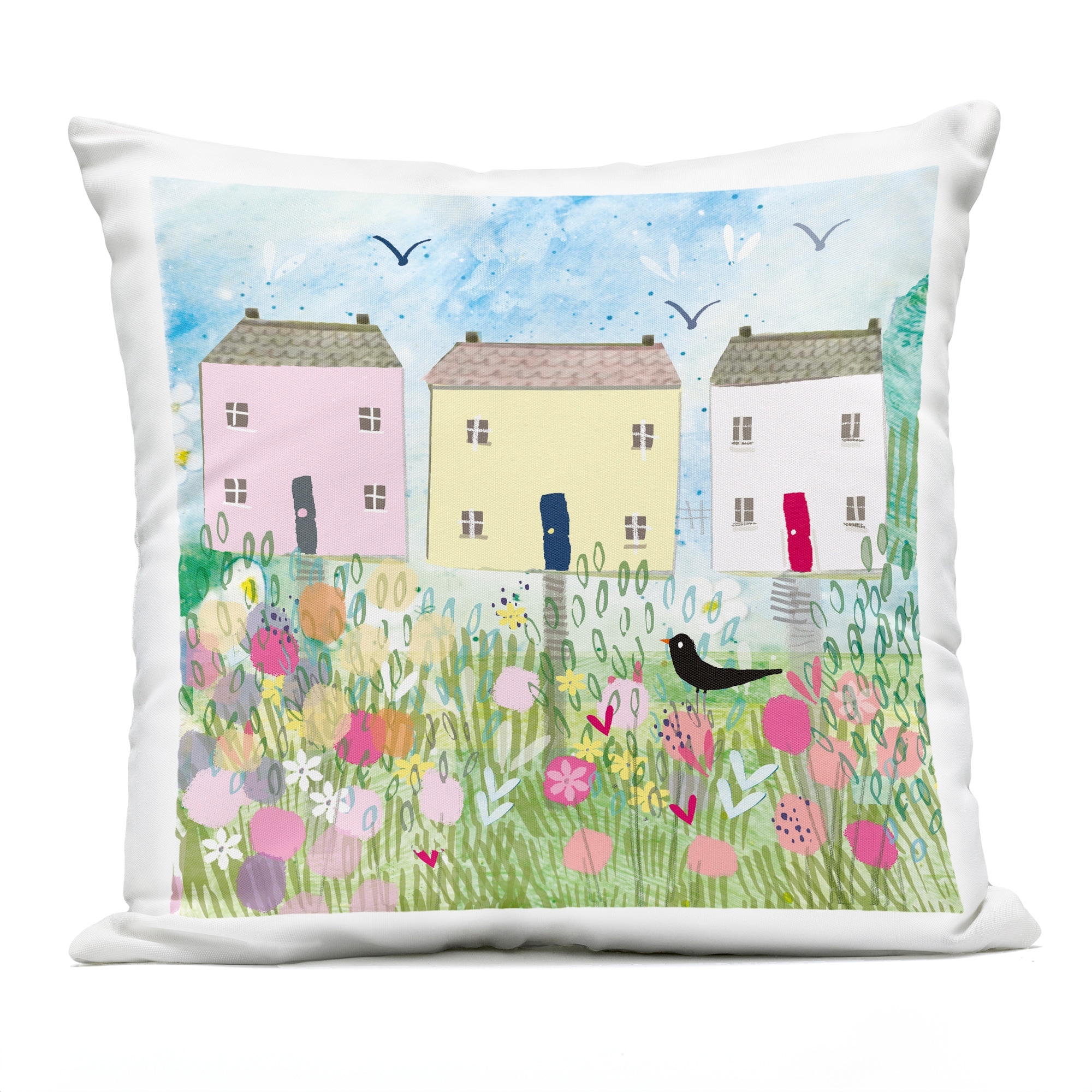 Stupell Row Of Cottages with Crow Decorative Printed Outdoor Throw Pillow Design by Clare Tupper