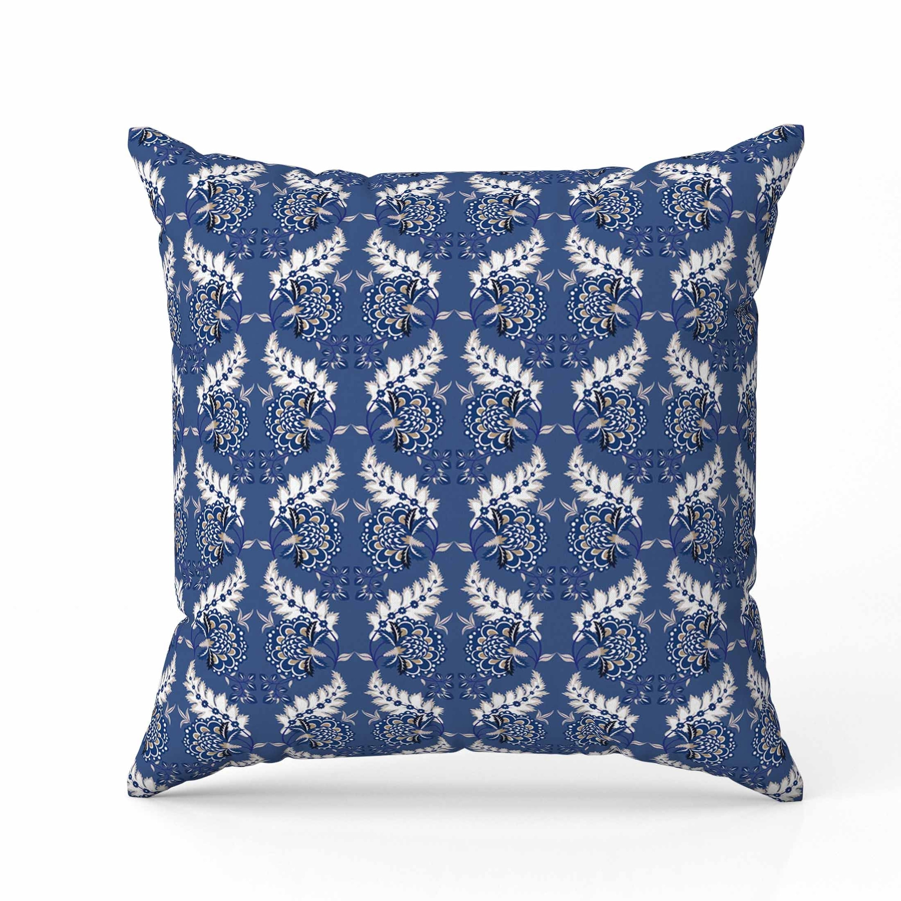 Botanical Bouquet Indoor/Outdoor Reversible Throw Pillow Blue and White