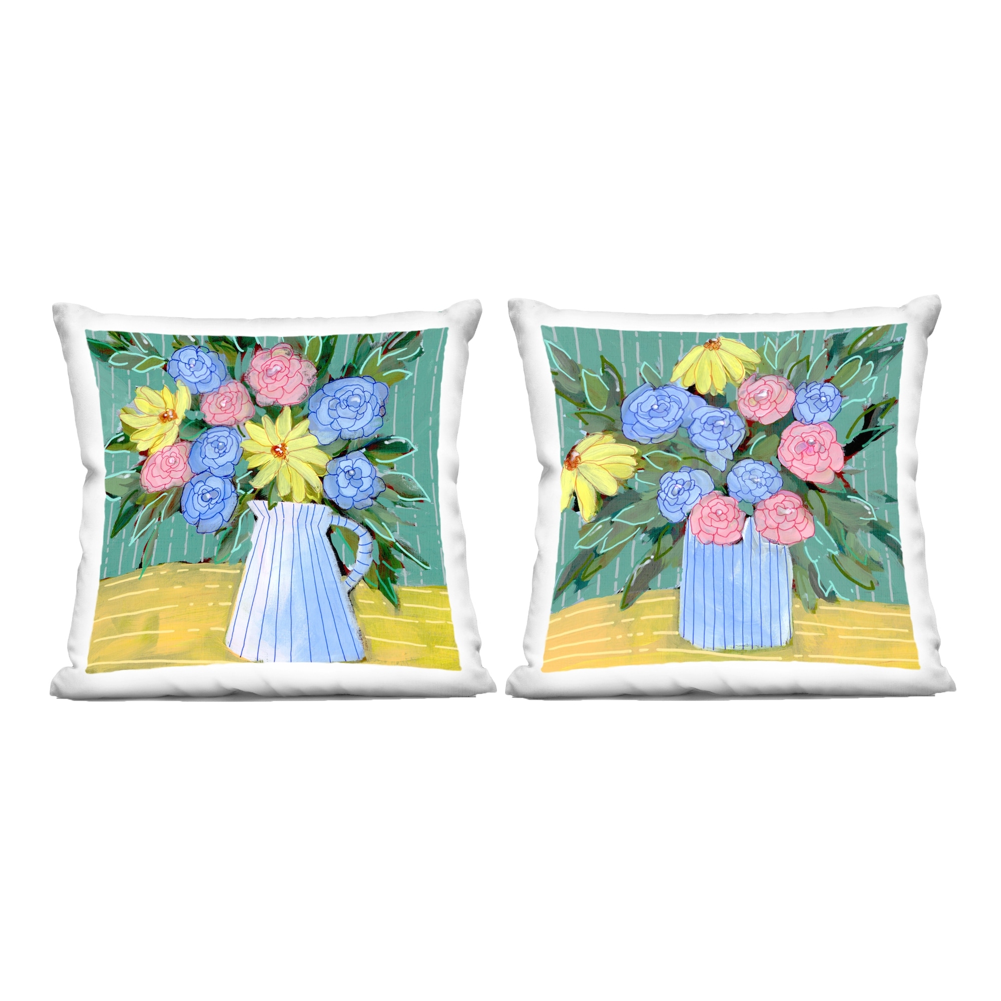 Stupell Bright Flowers on Stripes Decorative Printed Throw Pillow Design by Regina Moore (Set of 2)