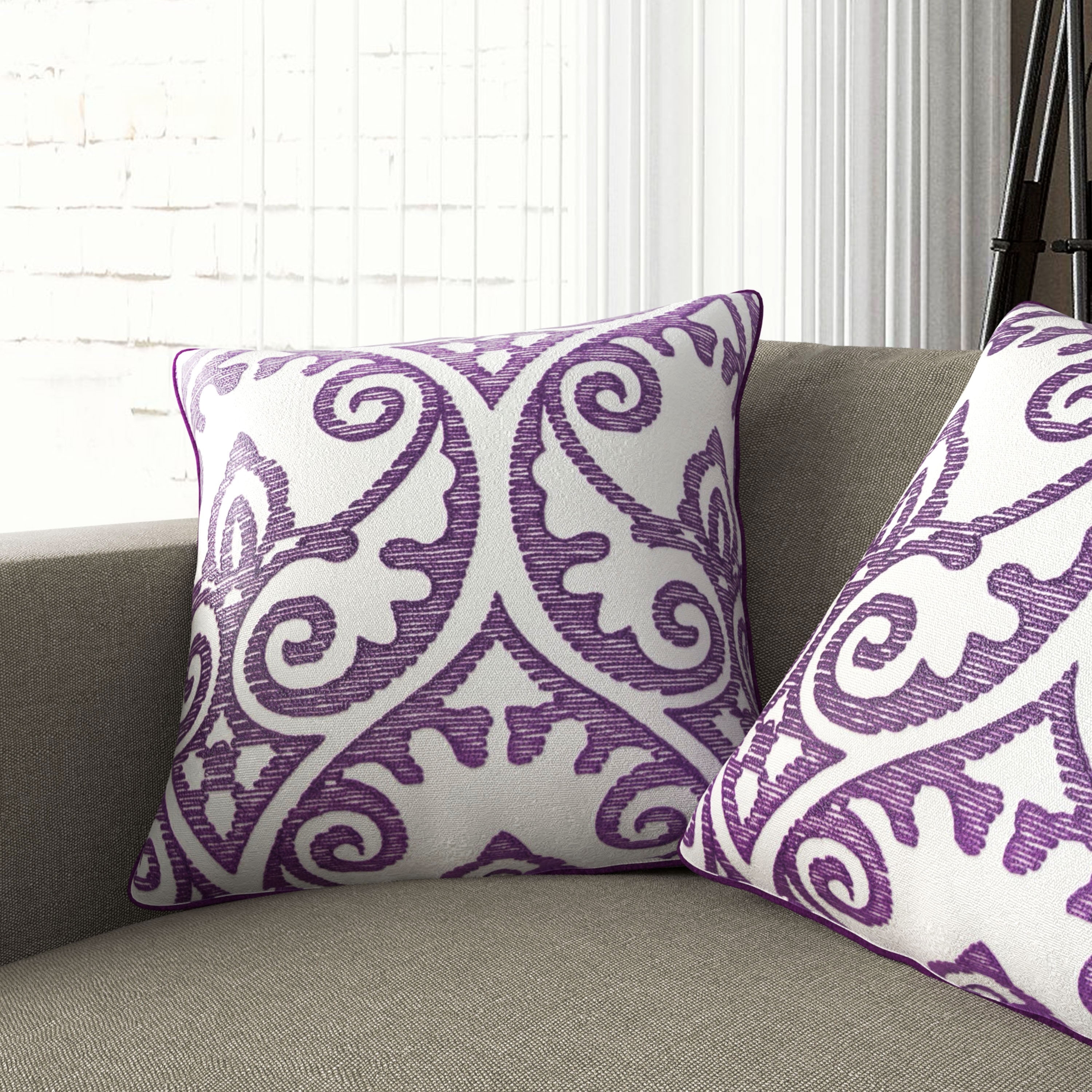 Ejubovic Contemporary Purple and White Accent Pillows (Set of 2) by Gracewood Hollow