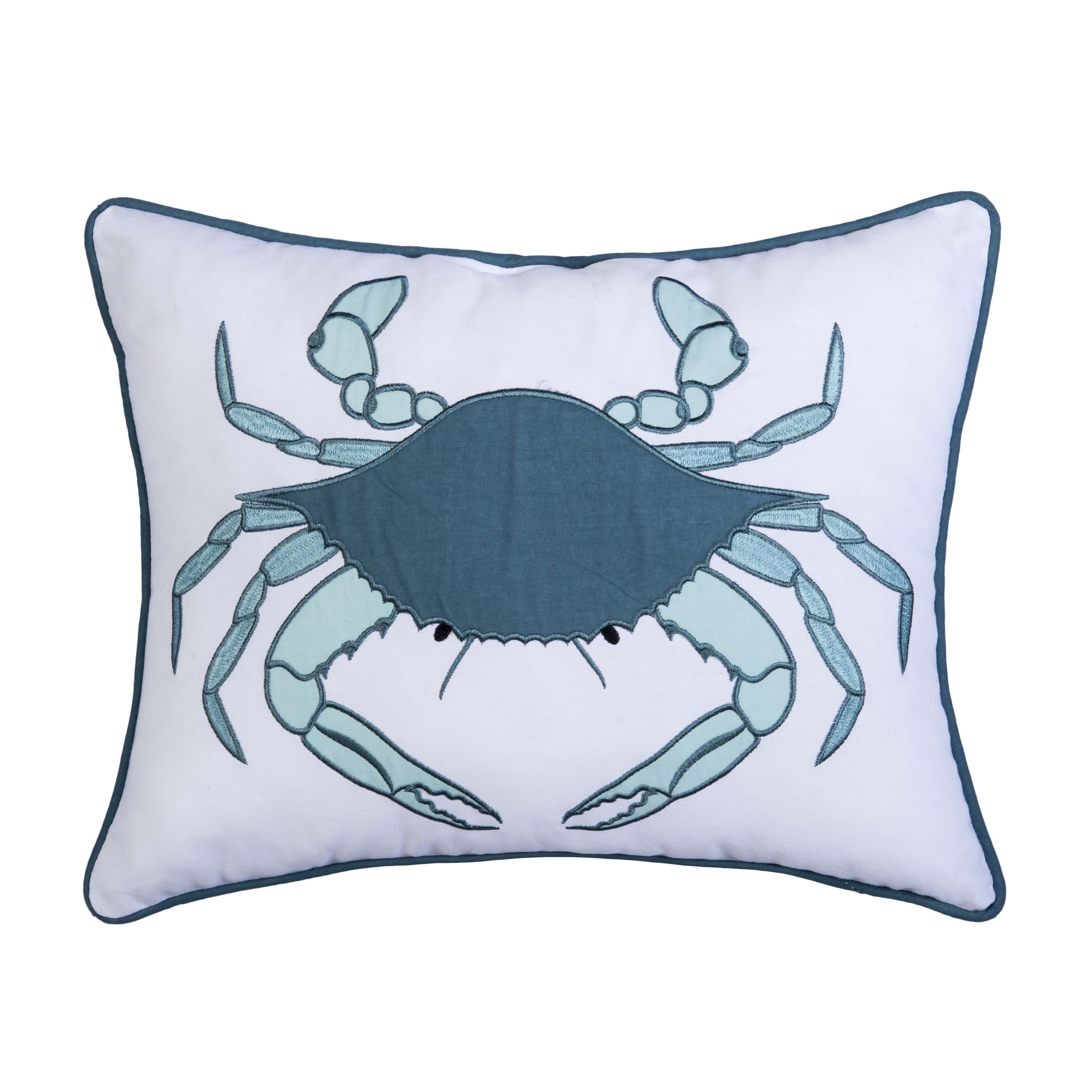 18" x 14" Sea Glass Crab Embroidered Piped Throw Pillow
