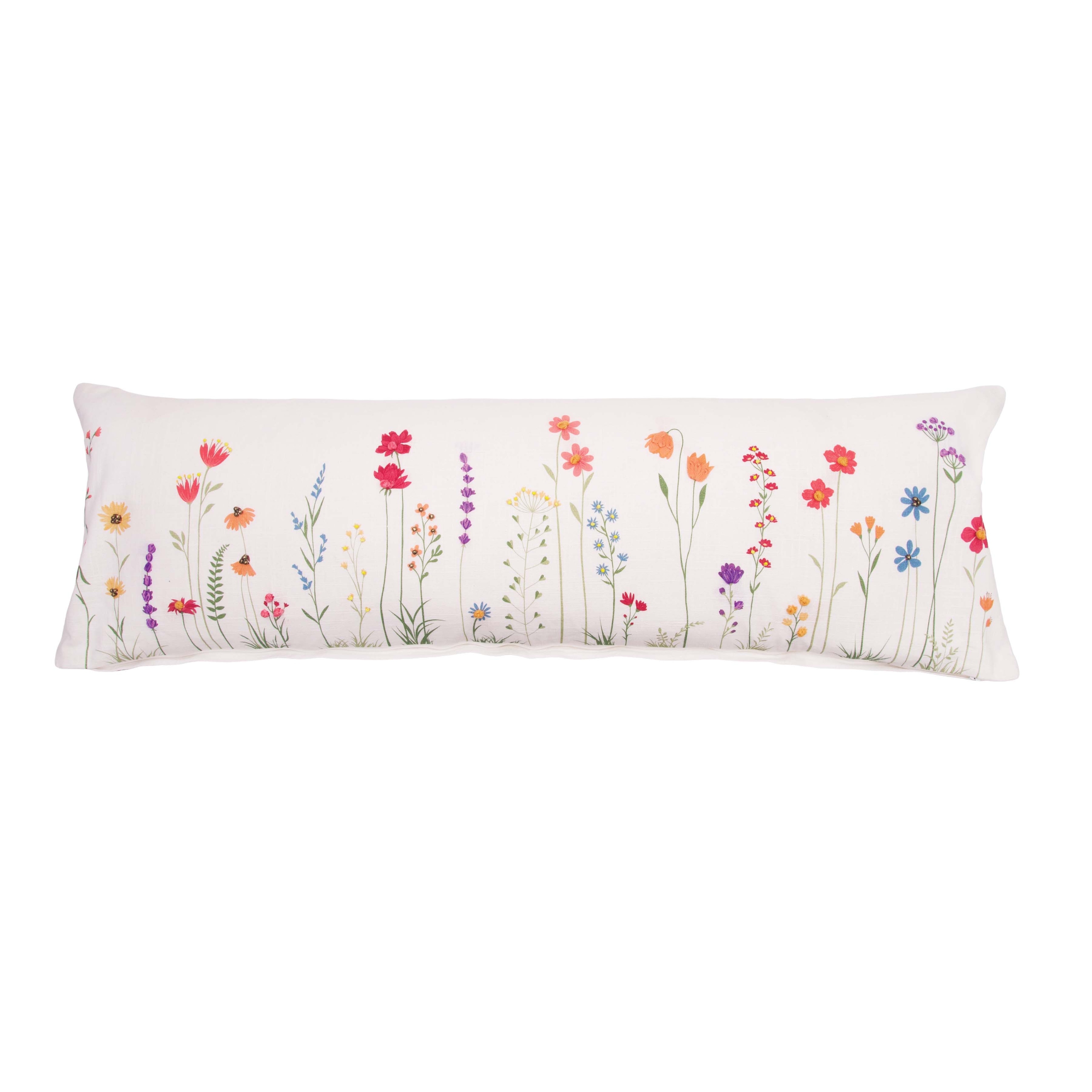 36" x 12" Botanical Field Elongated Embroidered Throw Pillow