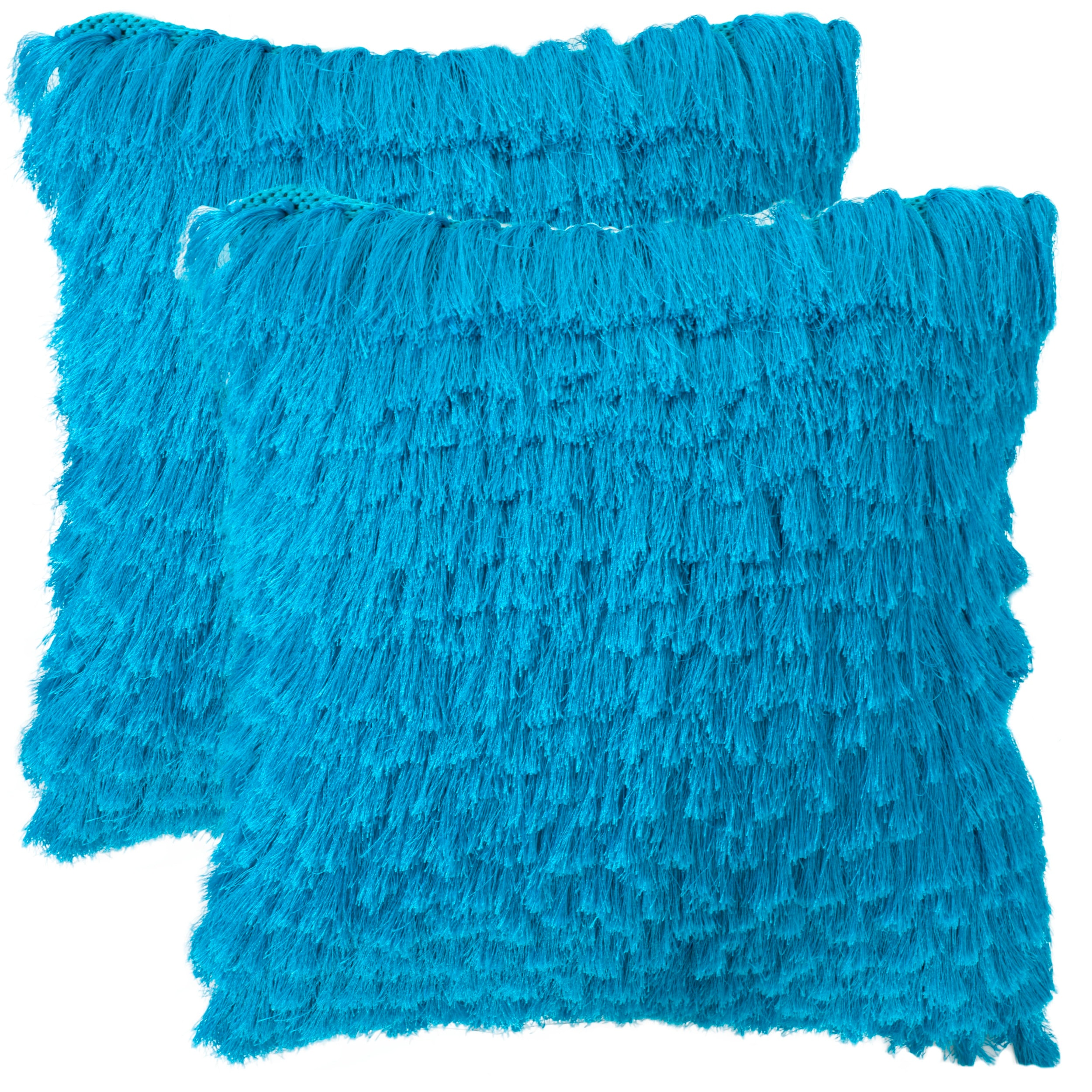 Safavieh Cali Shag 18-inch Electric Blue Feather/ Down Decorative Shaggy Pillow (Set of 2)