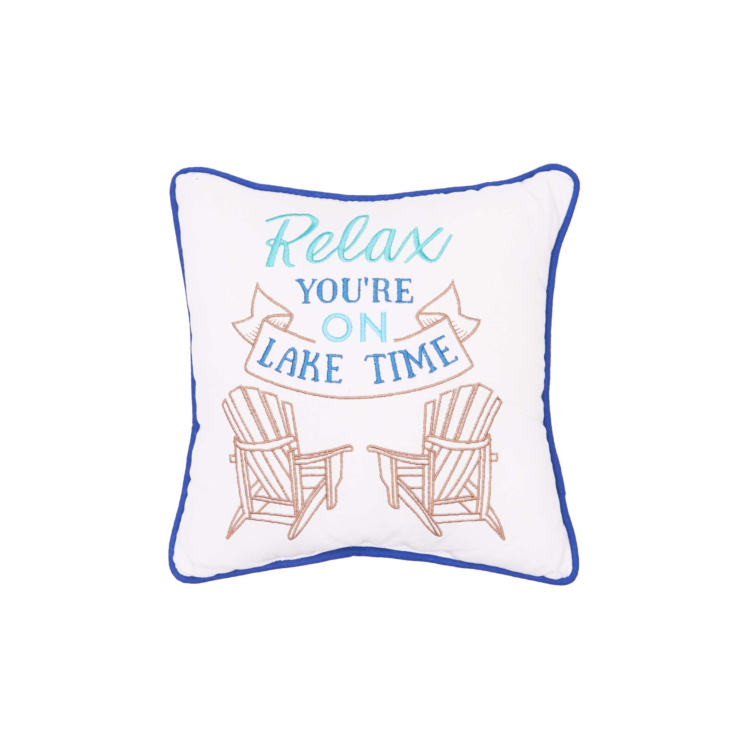 Small/Petite "Relax You're on Lake Time" Embroidered Accent Pillow, 10" x 10"