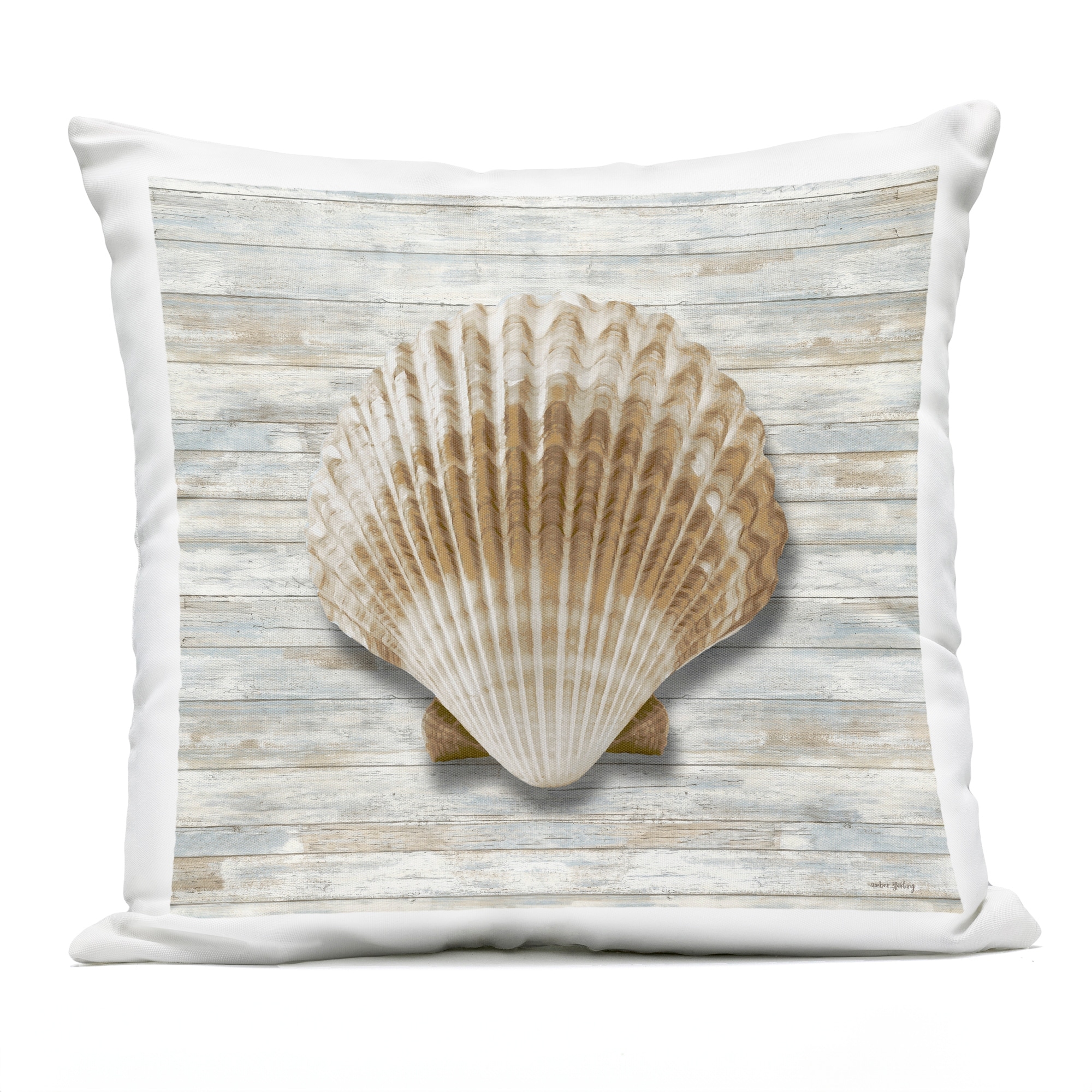 Stupell Clam Shell on Shiplap Printed Outdoor Throw Pillow Design by Amber Sterling