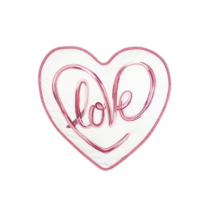 15" X 16" White And Rose Love Heart Throw Pillow With Embroidery