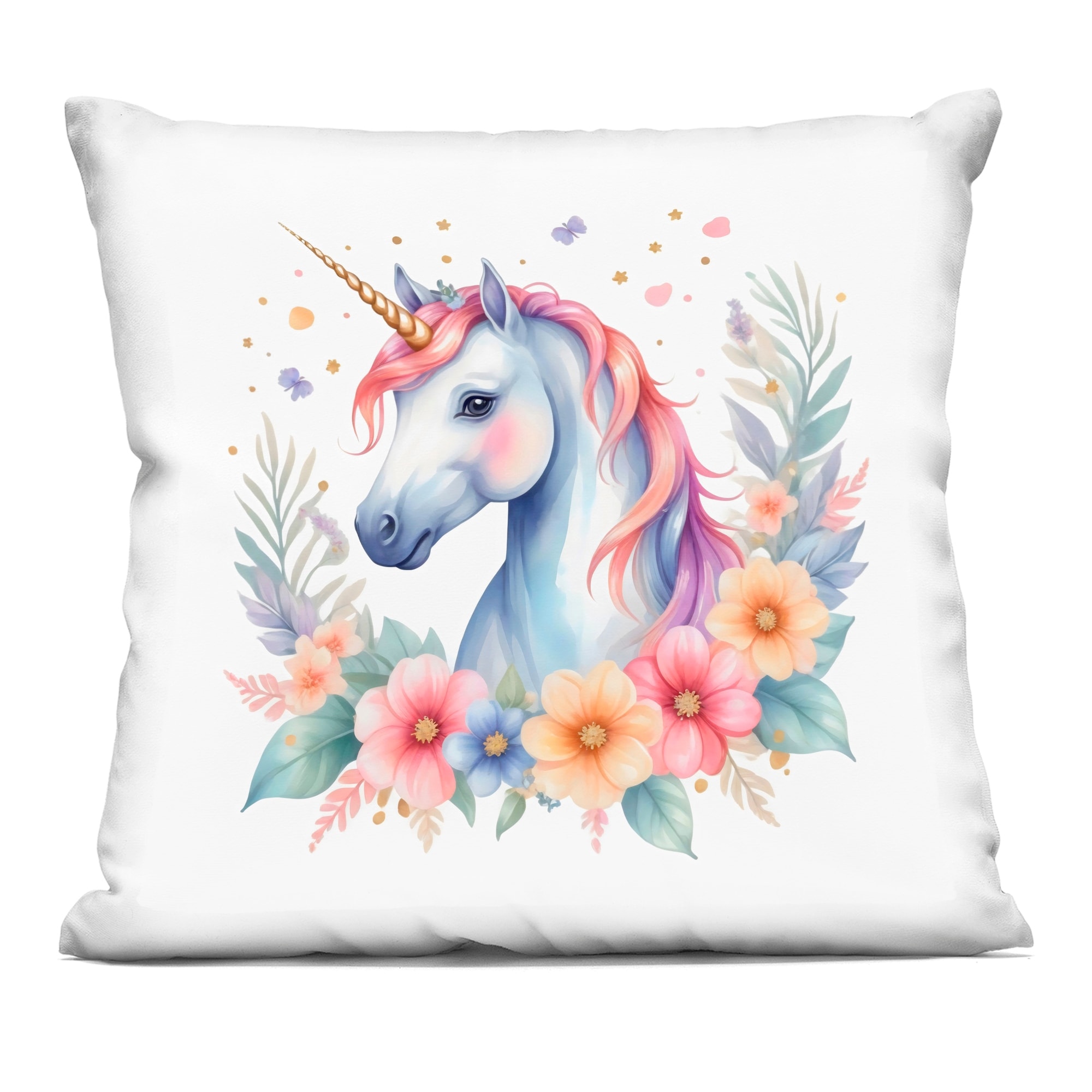 Stupell Colorful Unicorn with Flowers Decorative Printed Throw Pillow Design by Creative Studio