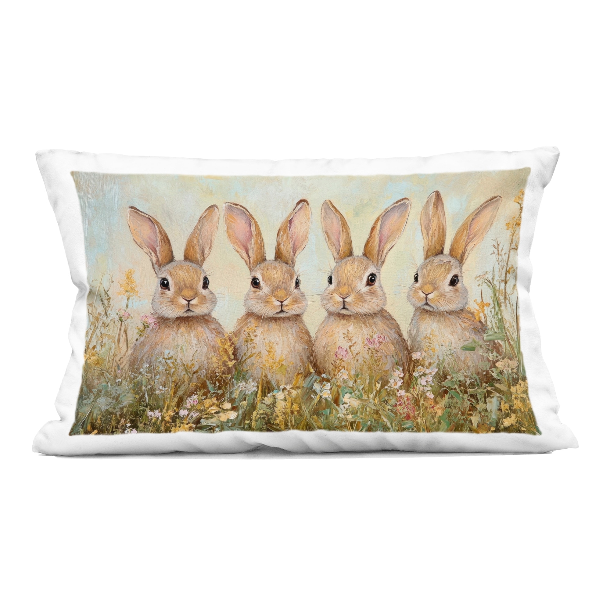 Stupell Four Bunnies in Flowers Decorative Printed Throw Pillow Design by Petal Prints Design