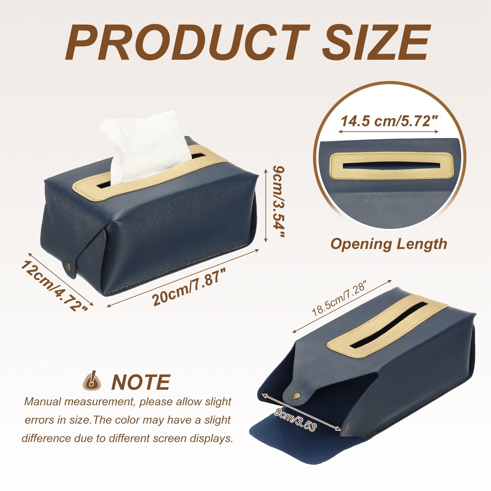 Faux Leather Tissue Box Cover, Rectangular PU Tissue Box Cover with Button Tissue Holder Bag for Home/Bathroom/Car