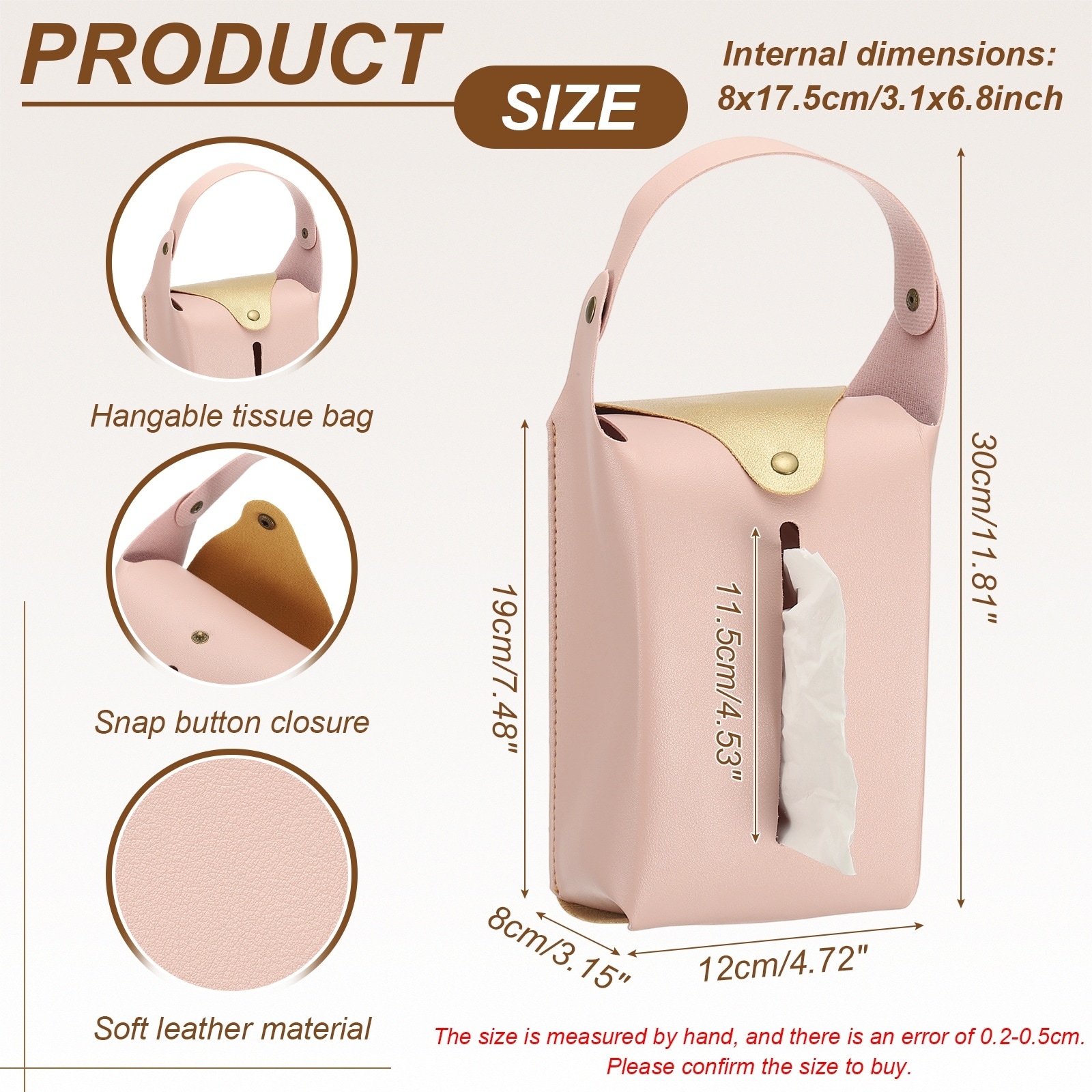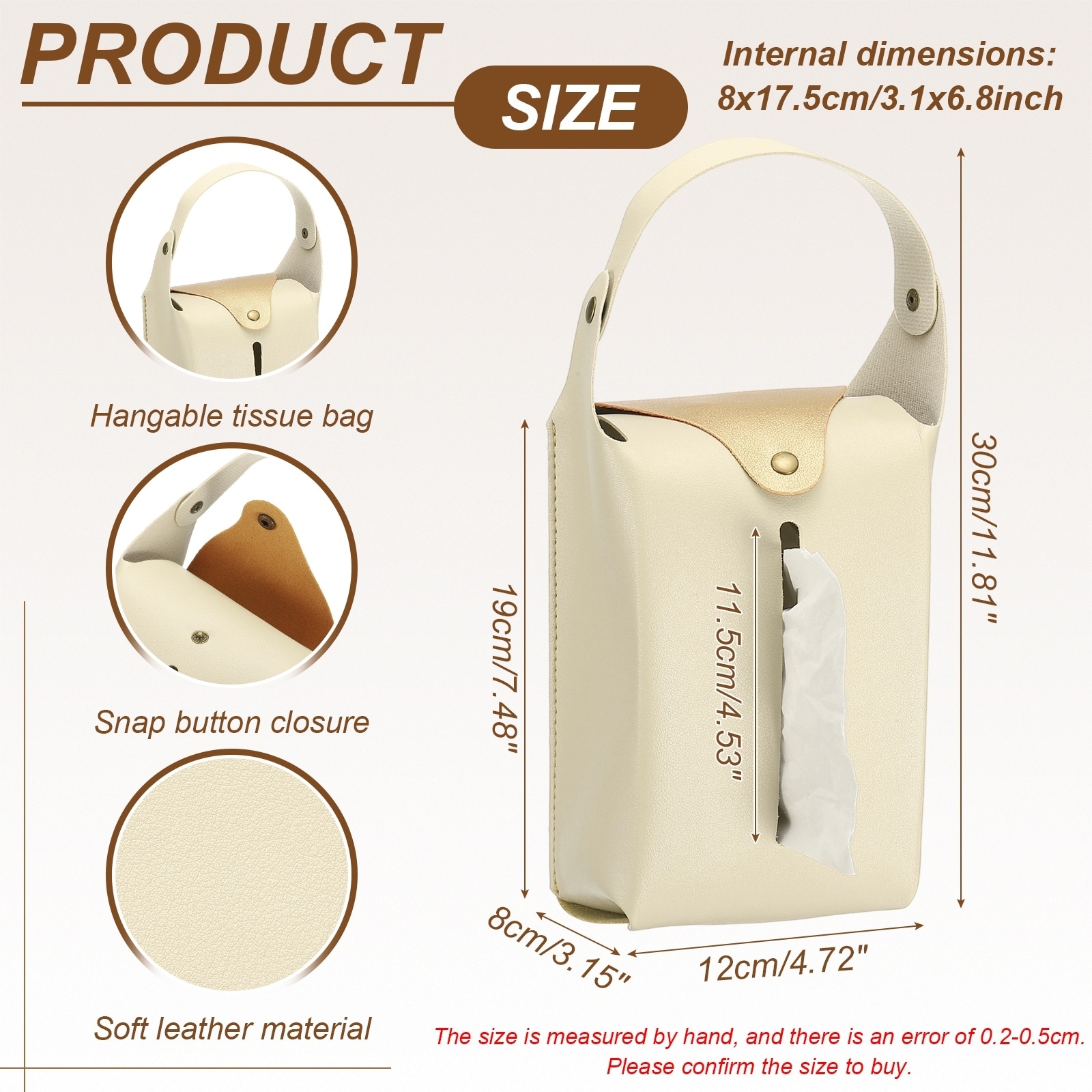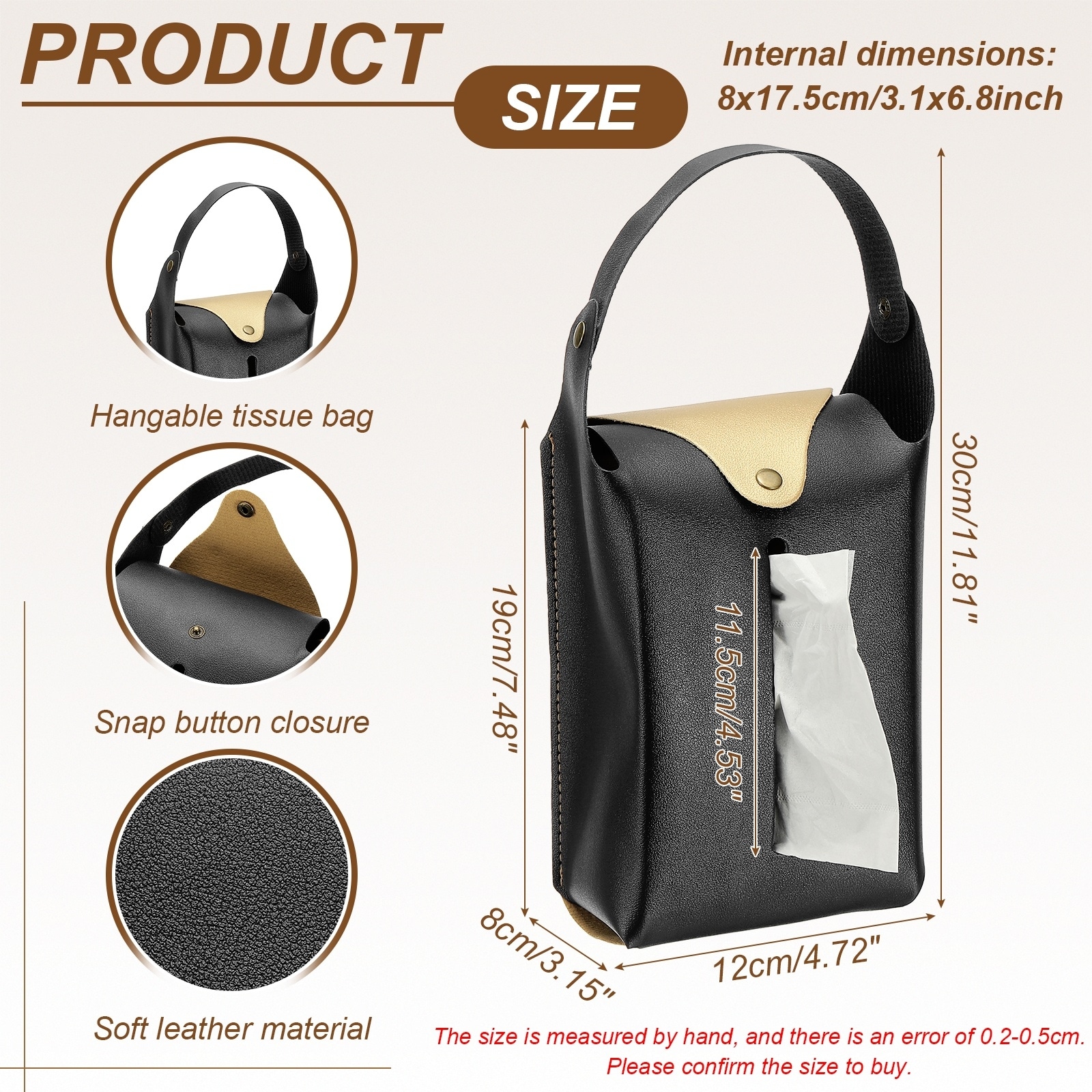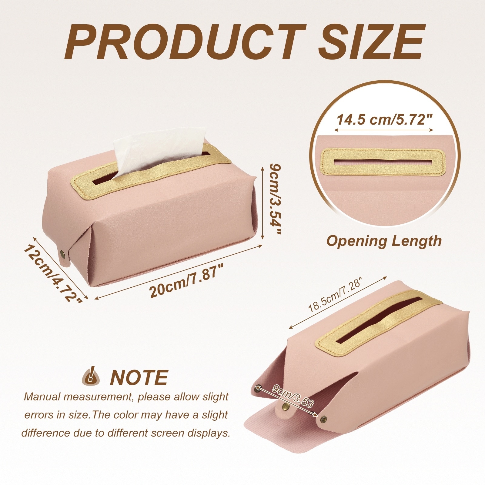 Faux Leather Tissue Box Cover, Rectangular PU Tissue Box Cover with Button Tissue Holder Bag for Home/Bathroom/Car