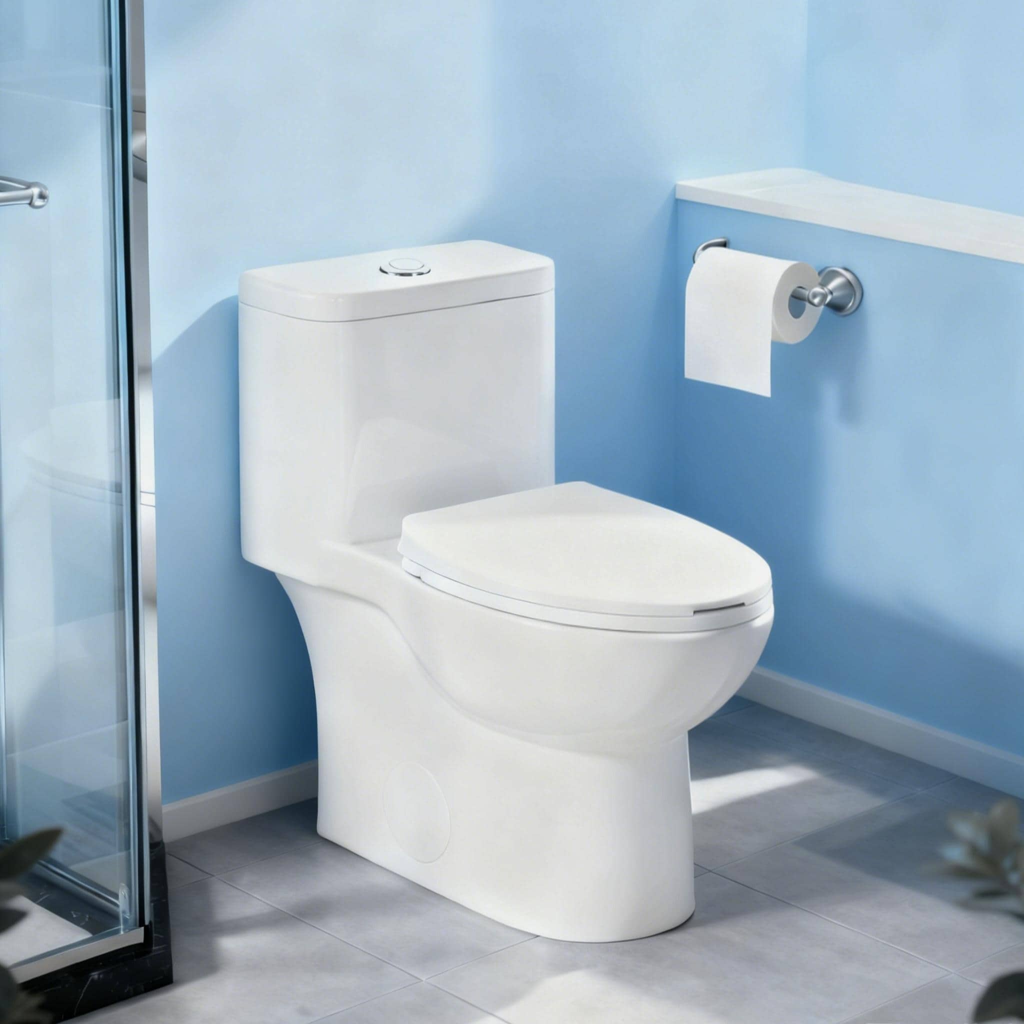 1.1/1.6 GPF Tornado Flush One-Piece Toilet Elongated,Siphonic S-trap 12",Soft Closing Seat,Button on Tank top