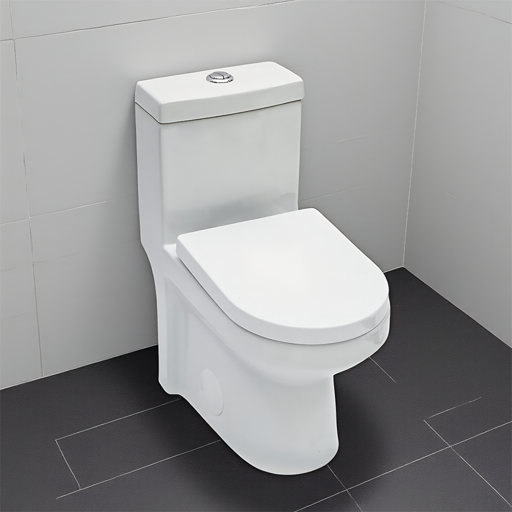 One-Piece Elongated Toilet, V-Cover, Soft Close Seat, Left-Hand Lever, Comfortable Bathroom Height, White