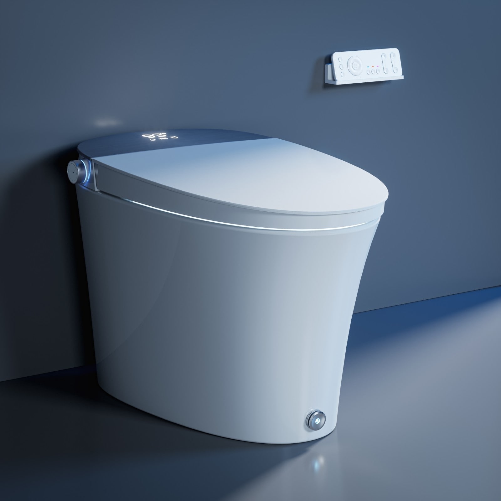 Elongated Smart Toilet with Bidet Wash, Heated Seat, Warm Air Dry, Remote Control, Auto Flush, LED Display