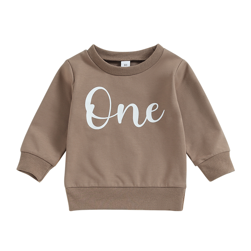 Cute Letter Print Pullover, Autumn Baby Boy Sweatshirt, Toddler Birthday Clothes Gift coffee 12 18 Months