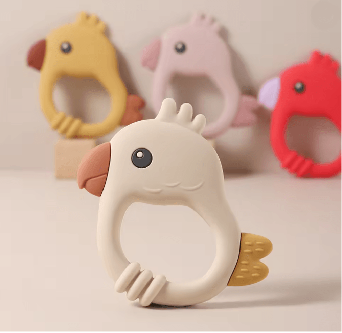 Parrot Silicone Baby Teether white