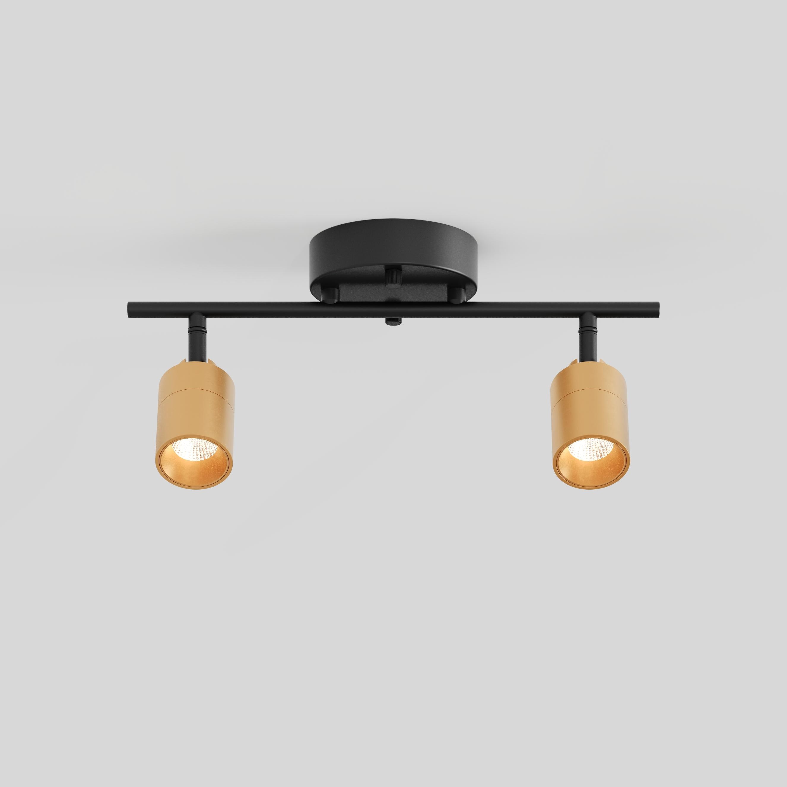 Shura 2-Light Black and Brass Integrated LED Track Light w/ Rotatable Heads, 1 ft.Track Lighting Kit, 3000k, 1470 Lumens
