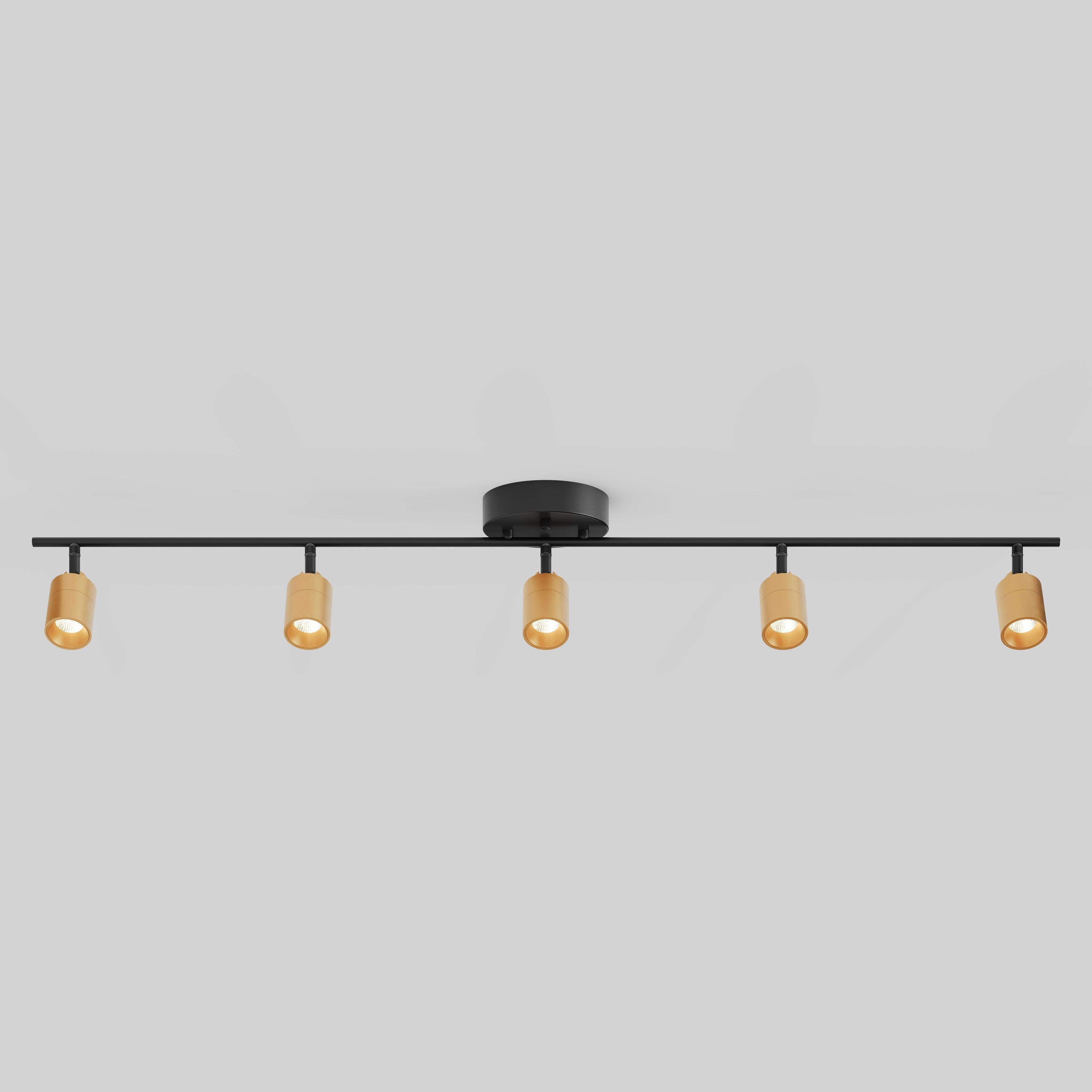 Shura 5-Light Black and Brass Integrated LED Track Light w/ Rotatable Heads, 4 ft. Track Lighting Kit, 3000k, 2450 Lumen