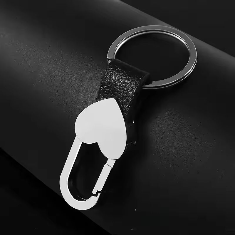 Custom Logo Leather & Metal Carabiner Keychain With Double Rings core blank