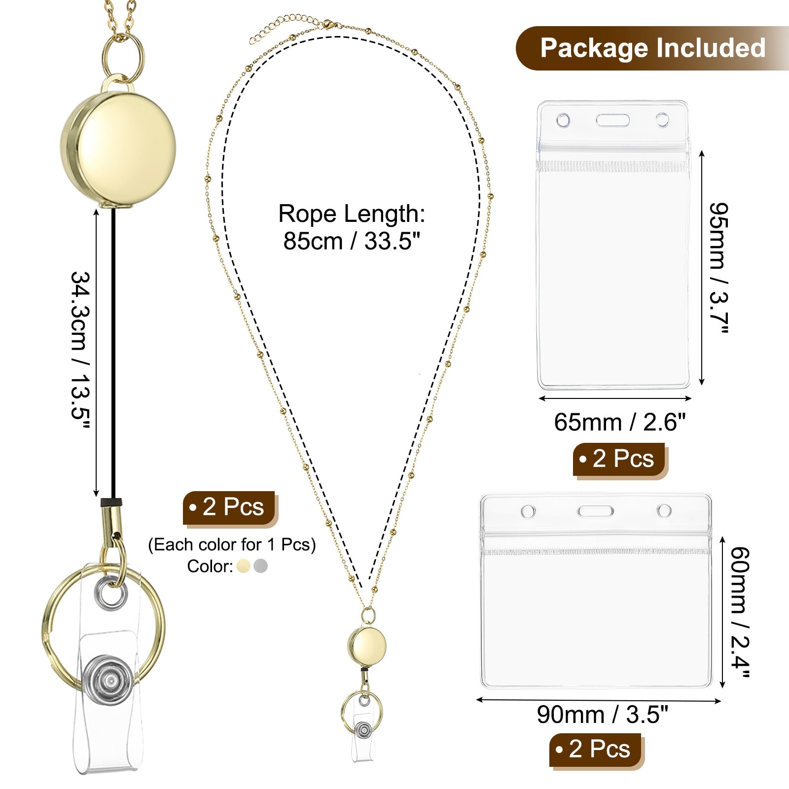 Badge Necklace Lanyard with ID Holder, Stainless Steel Retractable Square Badge Reel Lanyard Clip Chain with ID Holder for Woman